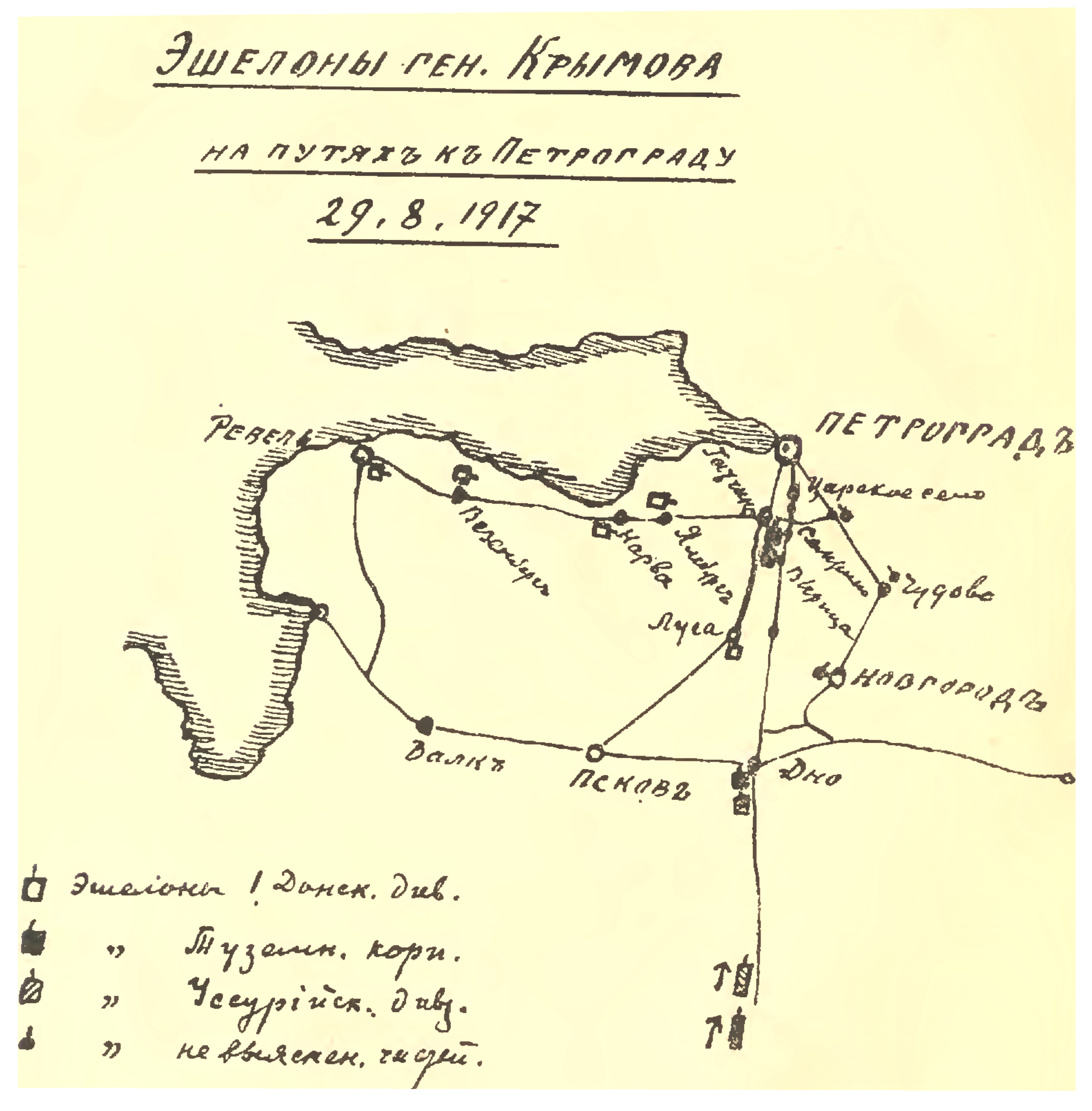 Эшелоны генерала Крымова на путях к Петрограду 29.08.1917