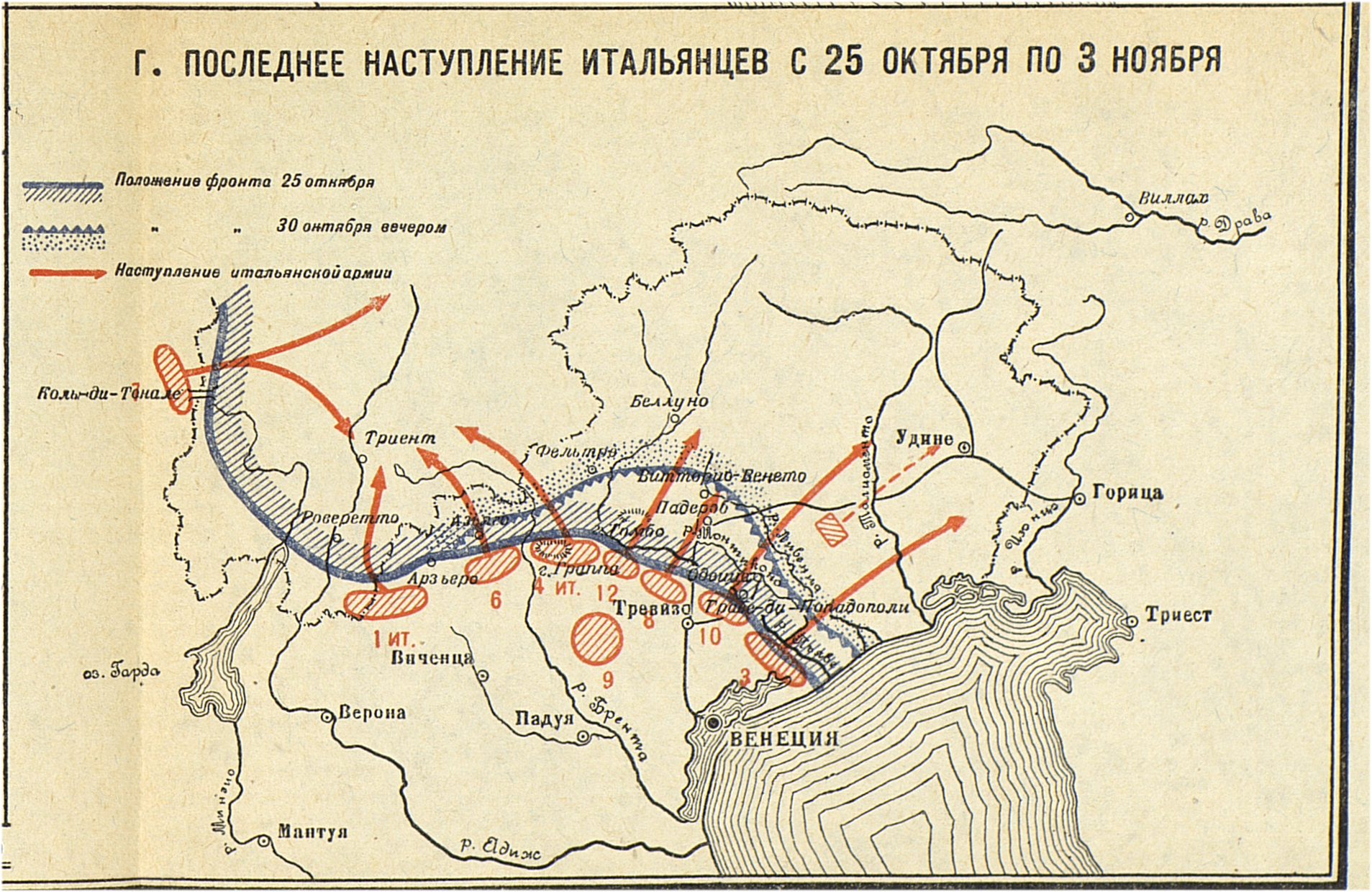 Кампания 1917 года. Итальянский театр. Кампания 1917-1918 годов. Последнее наступление итальянцев с 25 октября по 3 ноября 1918 года