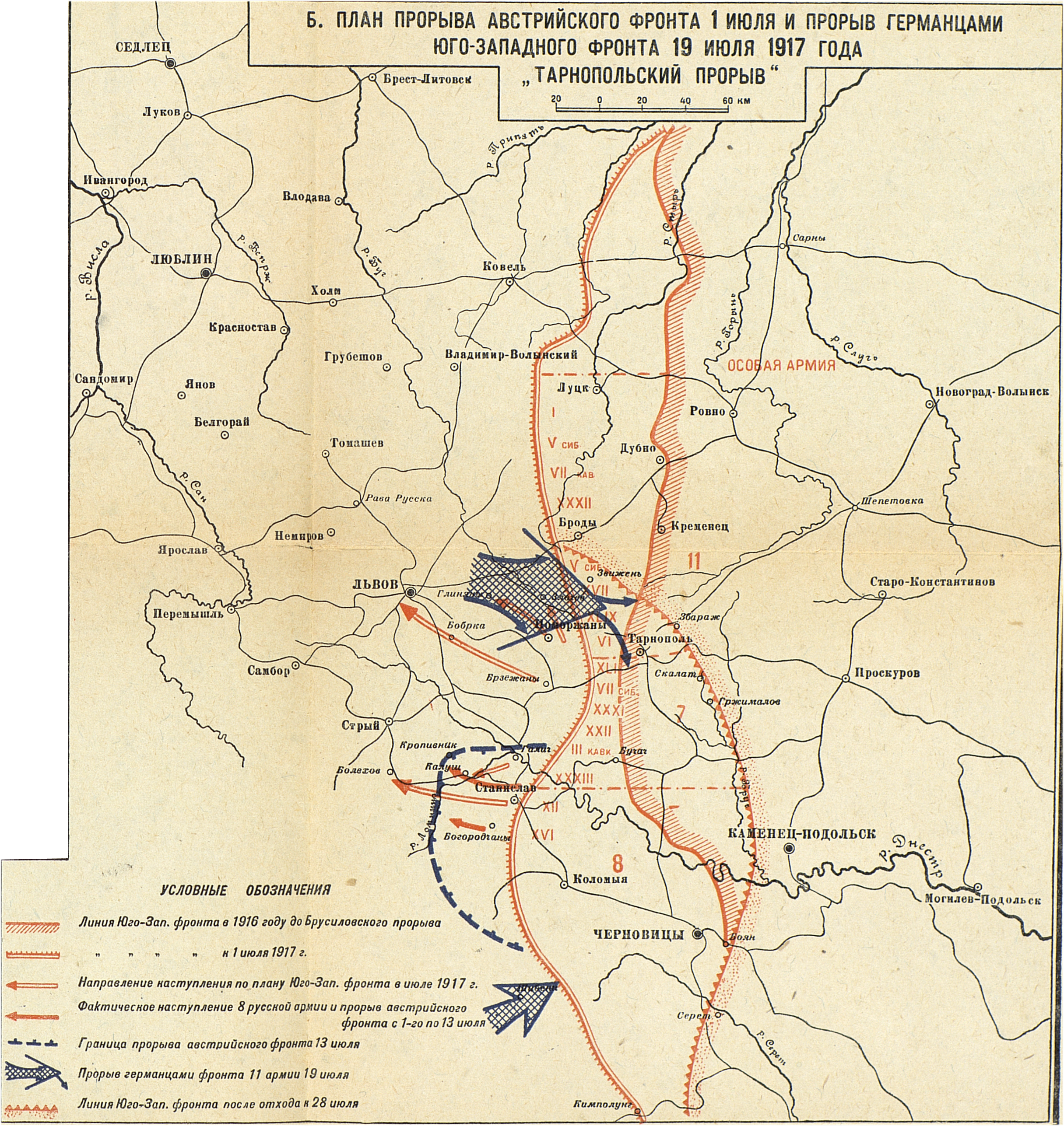 Кампания 1917 года. Русский театр. Наступление и отход юго-западного фронта. План прорыва австрийского фронта 1 июля и прорыв германцами Юго- западного фронта 19 июля 1917 года. "Тарнопольский прорыв"
