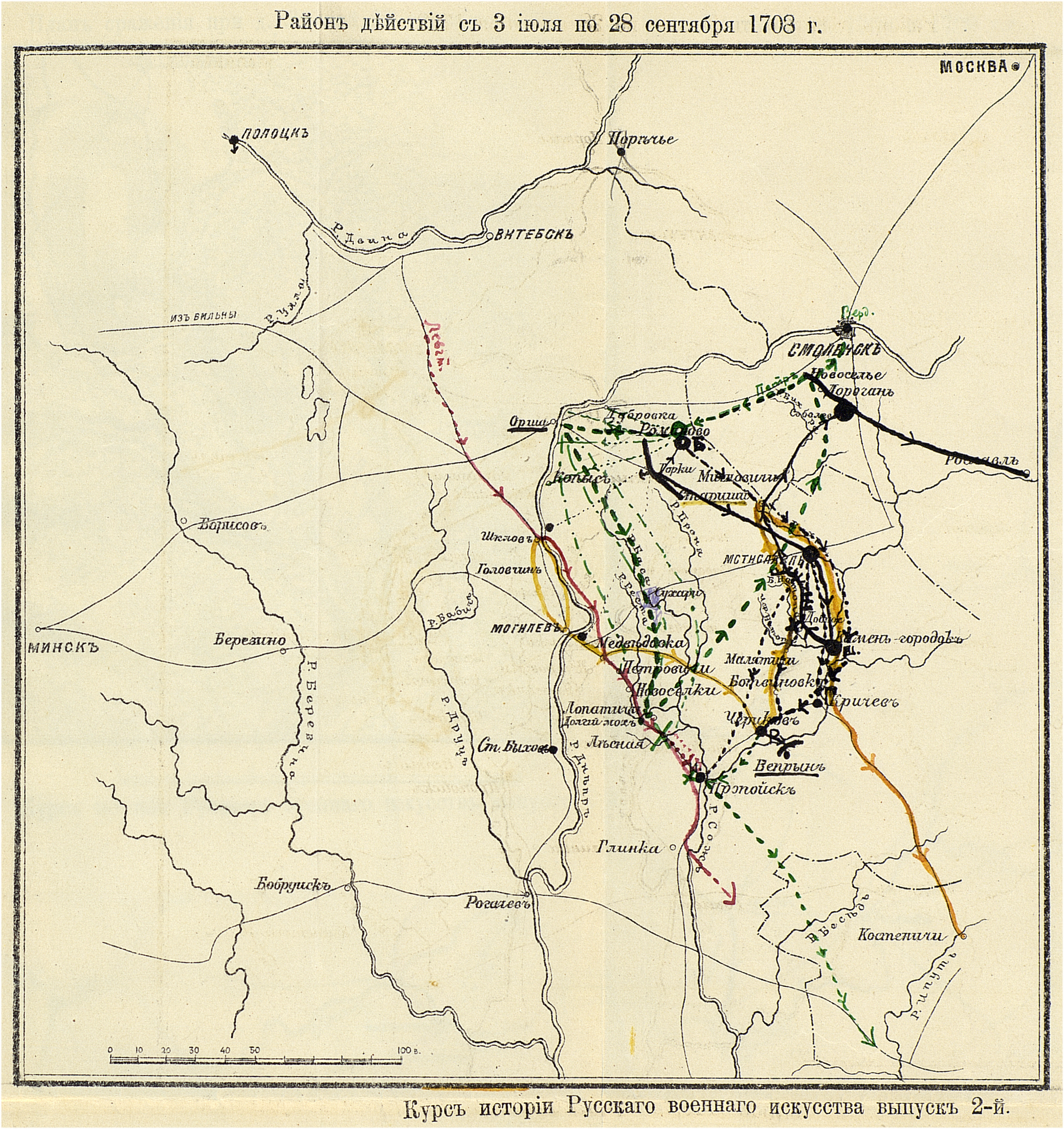 Район действий с 3 июля по 28 сентября 1708 года