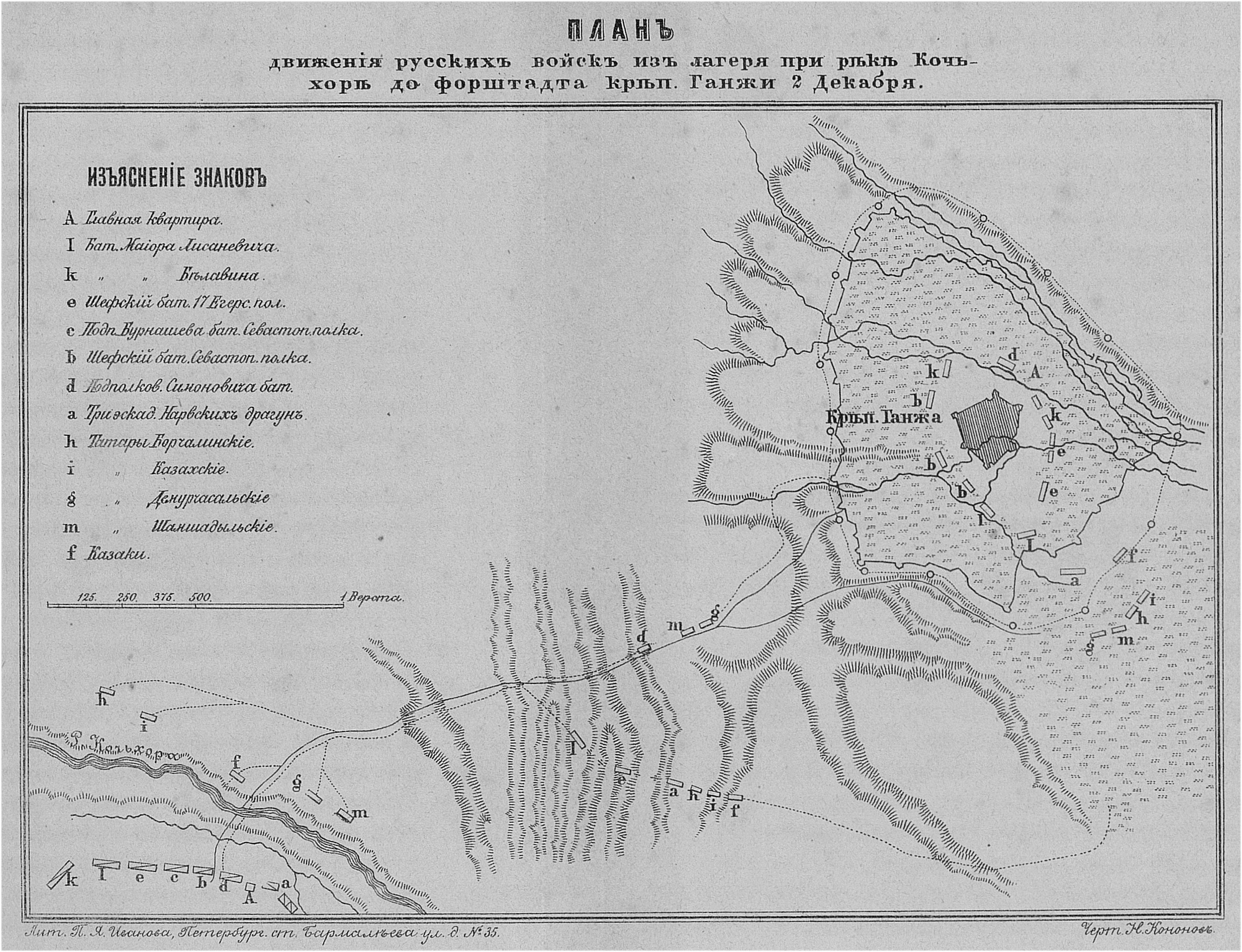 Движение русских войск из лагеря при реке Кочьхоре до форштадта крепости Ганжи 2 декабря