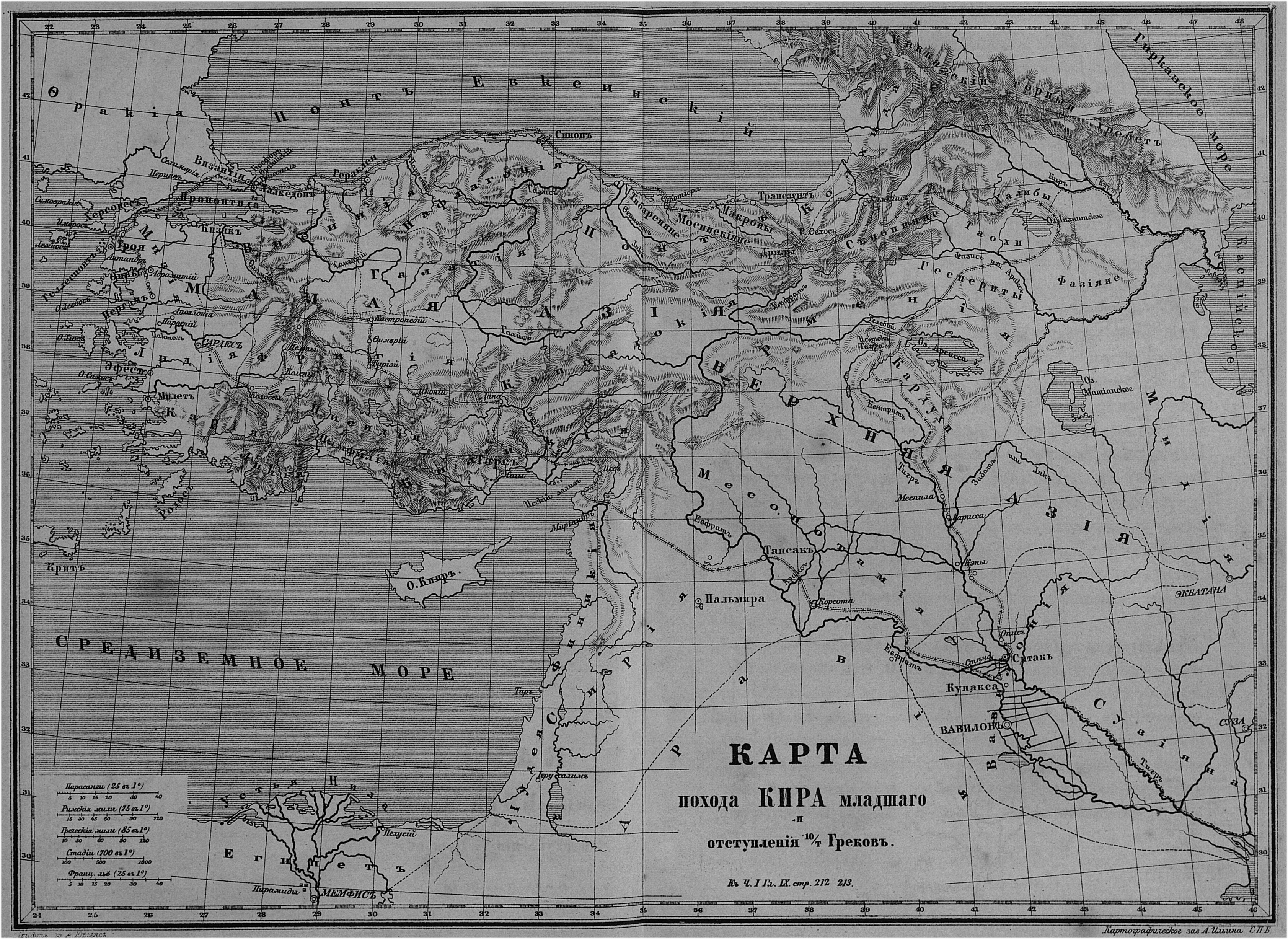 Карта похода Кира младшего и отступления 10/т Греков.