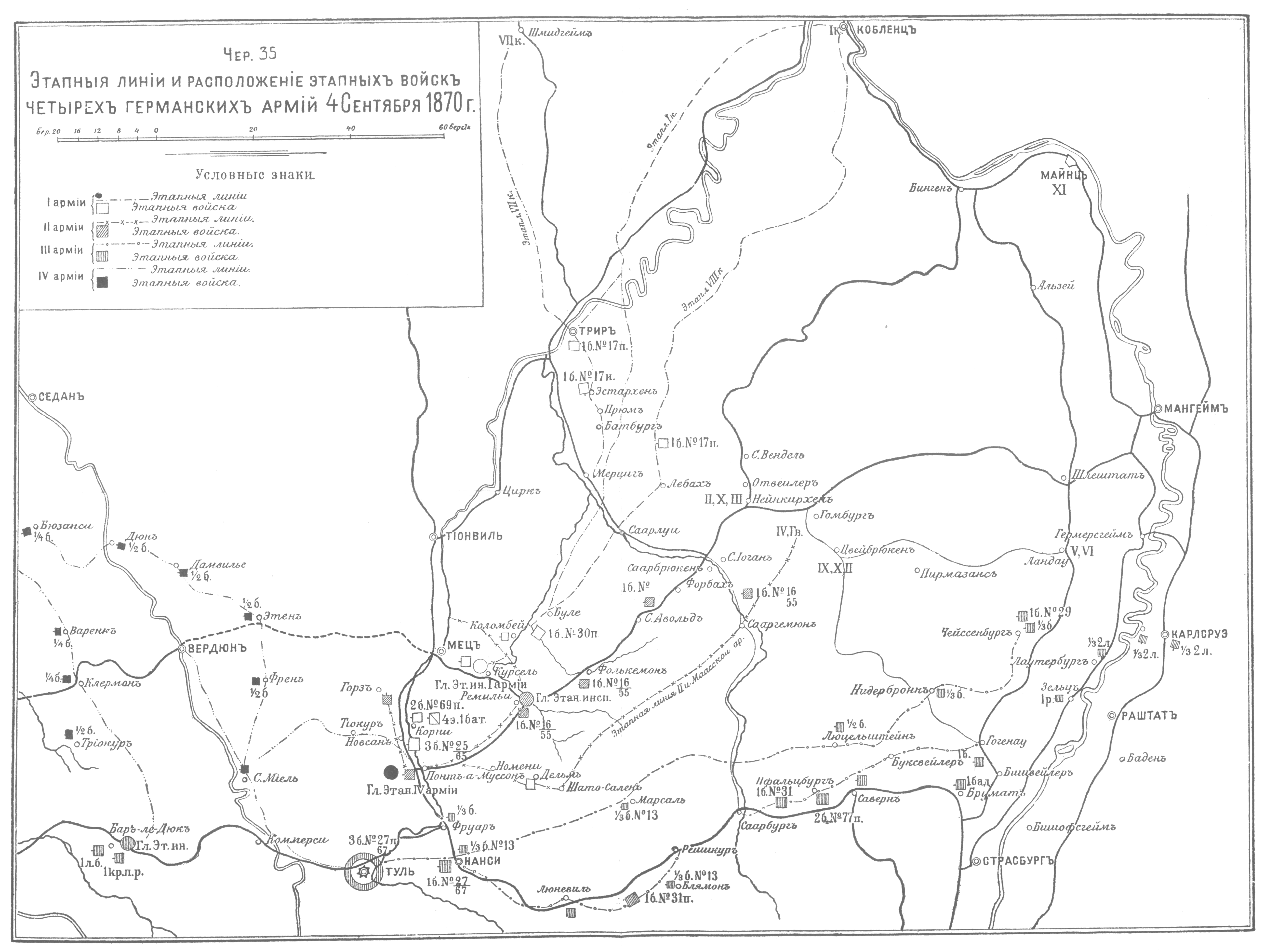 Этапные линии и расположение этапных войск четырех германских армий 4 сентября 1870 года