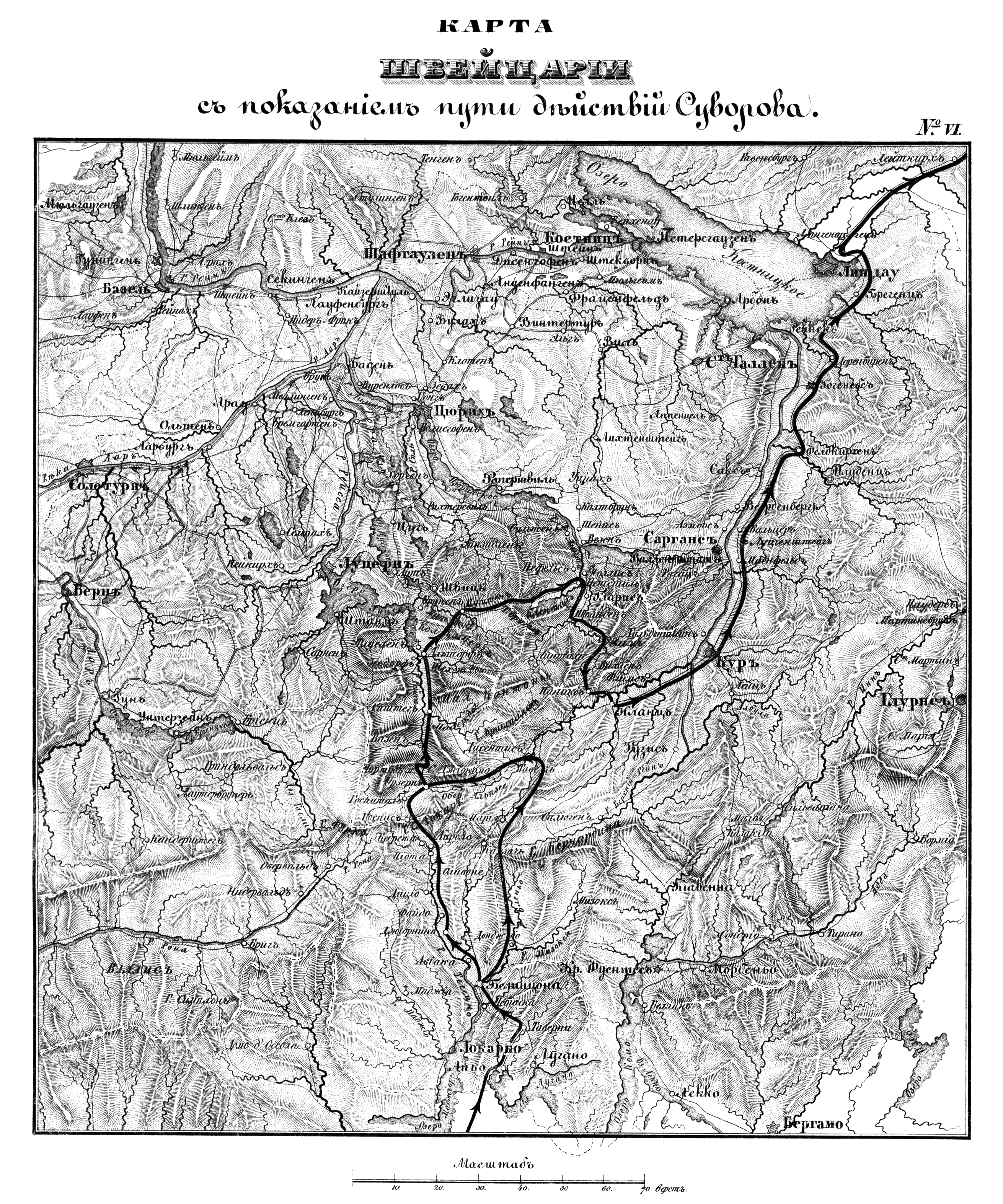 Швейцария с показанием пути действий Суворова