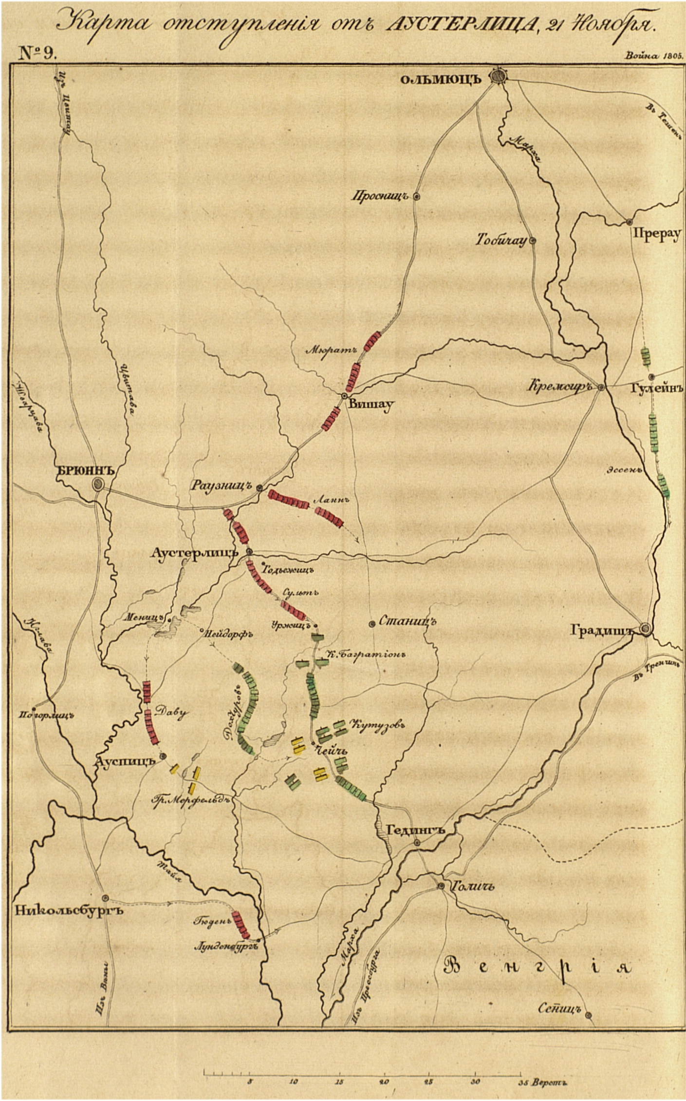 Карта отступления от Аустерлица 21 Ноября 1805 года.