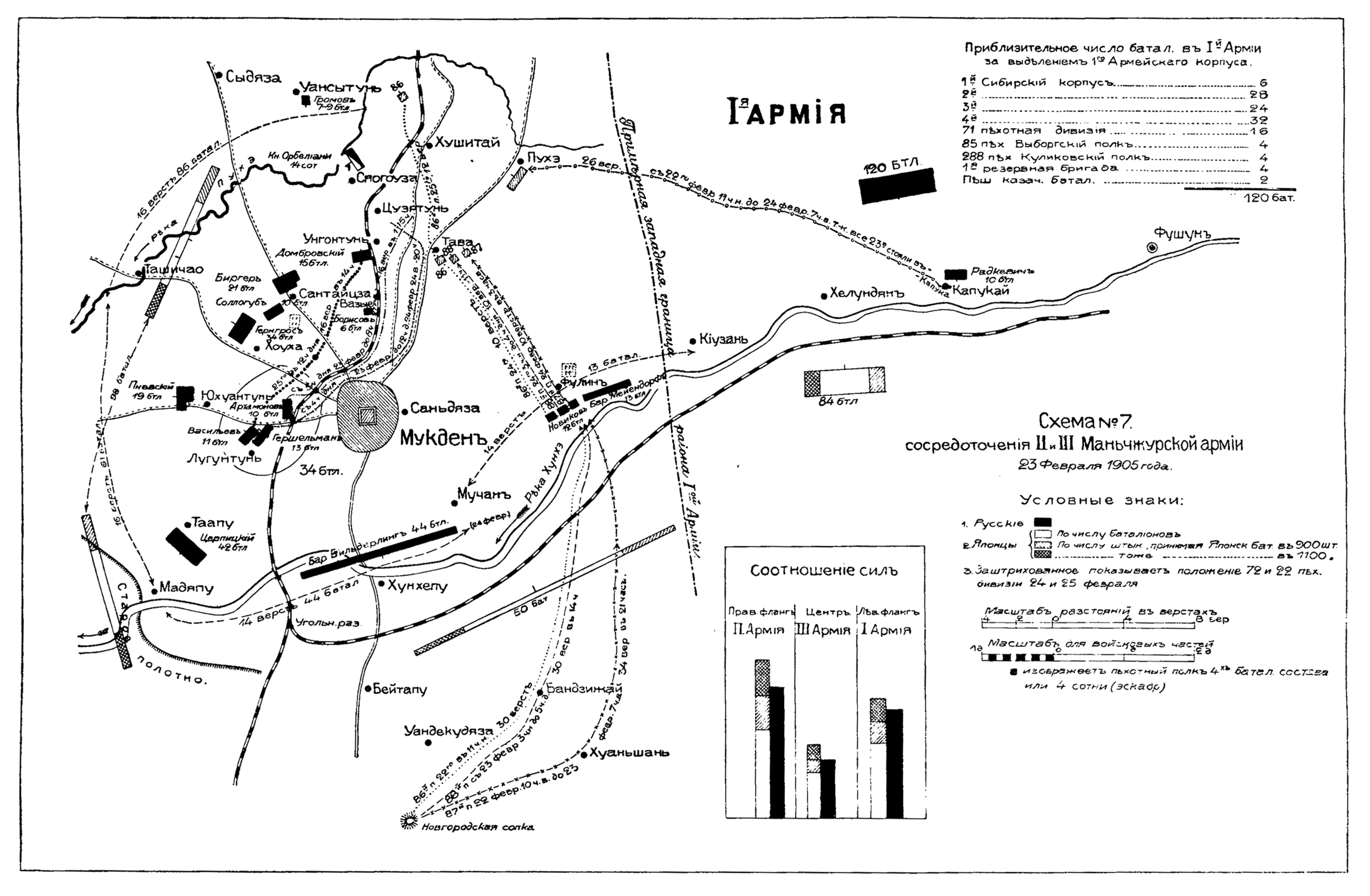 Схема сосредоточения 2 и 3 Маньчжурской армии 23 февраля 1905 года