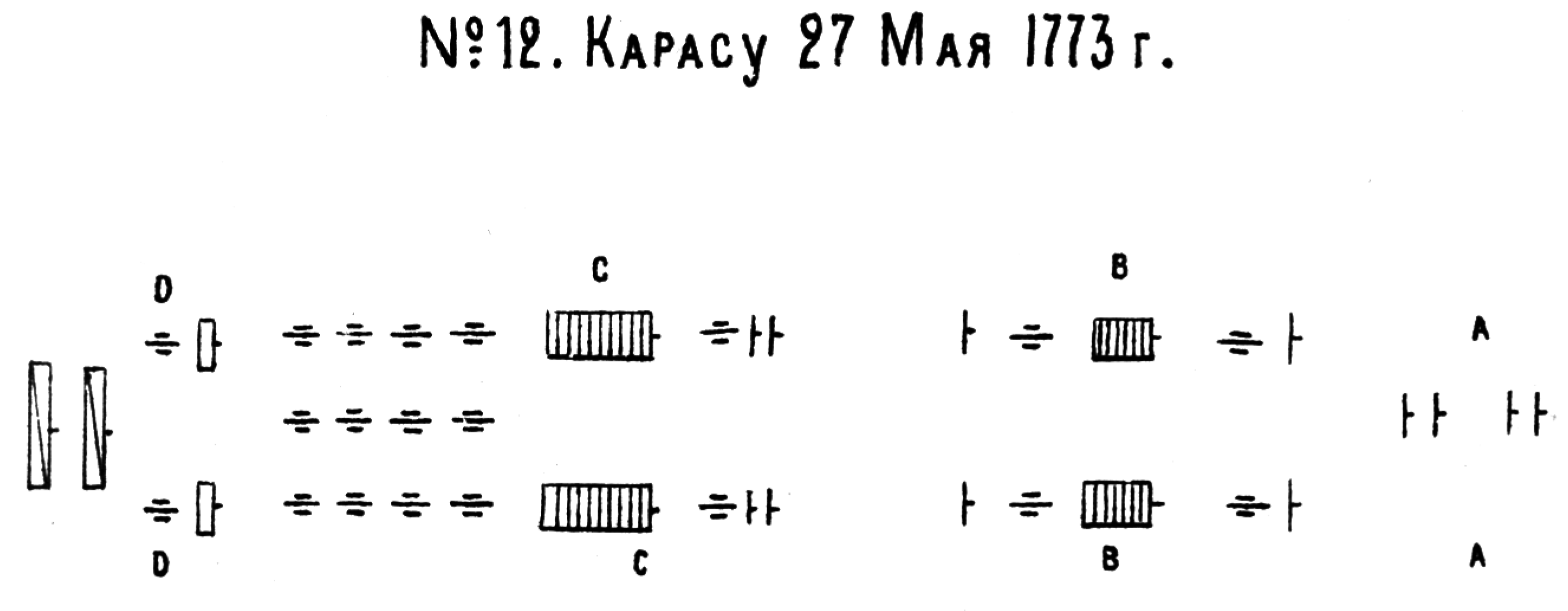 Чертежи. Тактические построения в кампанию 1769-1774 годов. №12 Карасу 27 мая 1773