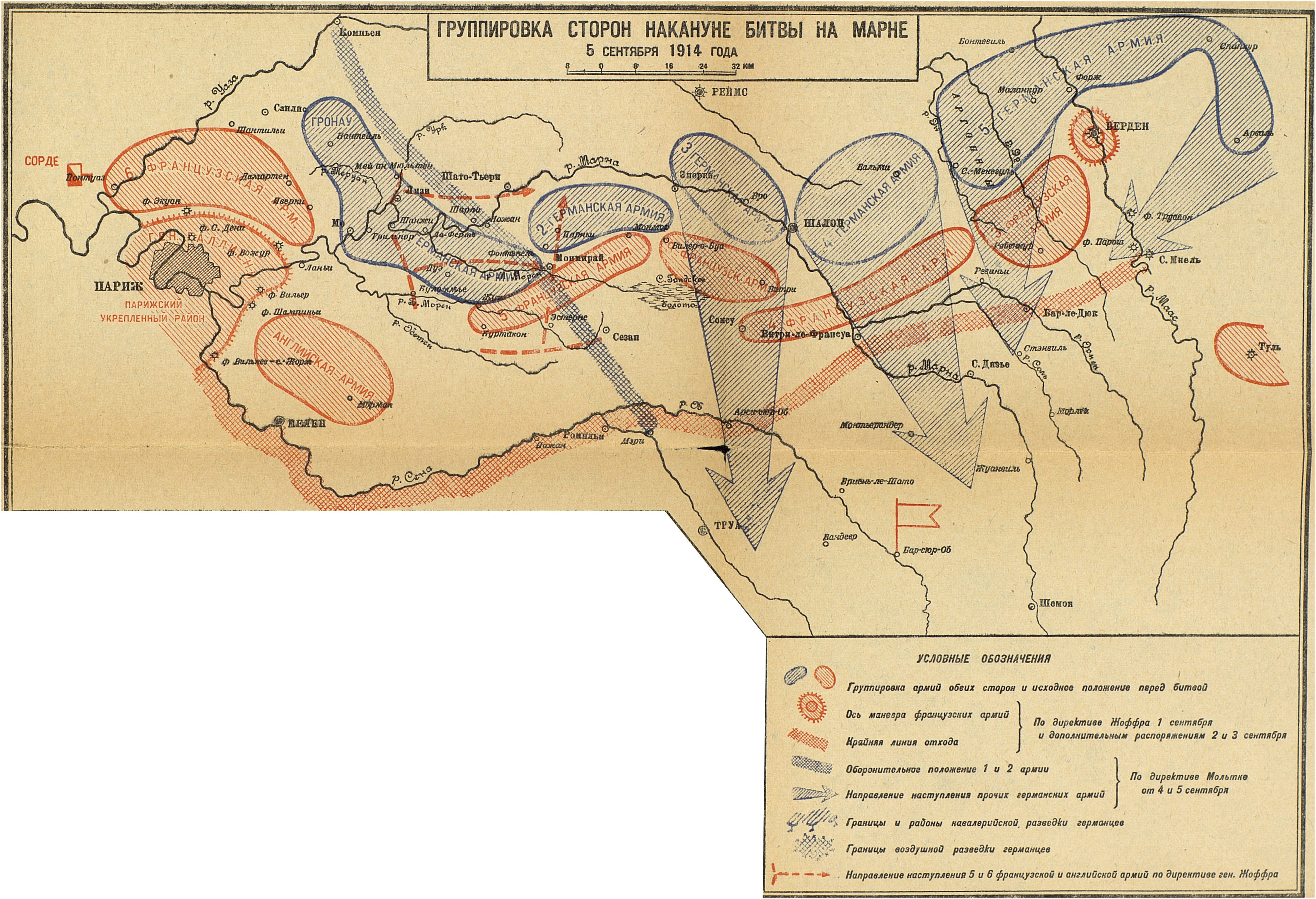 Кампания 1914 года. Французский театр. Группировка сторон накануне битвы на Марне 5 сентября