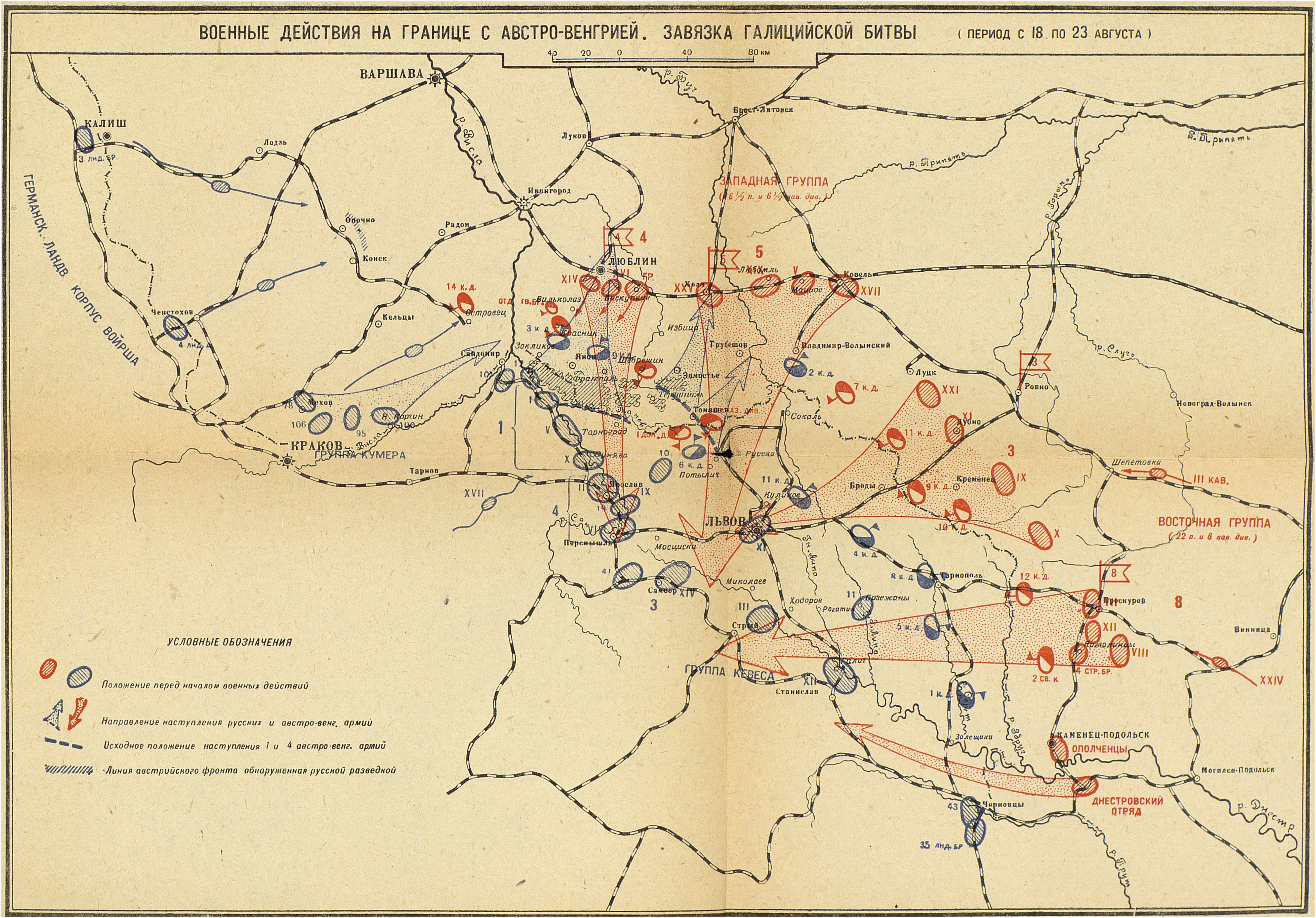 Кампания 1914 года. Русский театр. Военные действия на границе с австро-венгрией. Завязка Галицийской битвы (период с 18 по 23 августа).