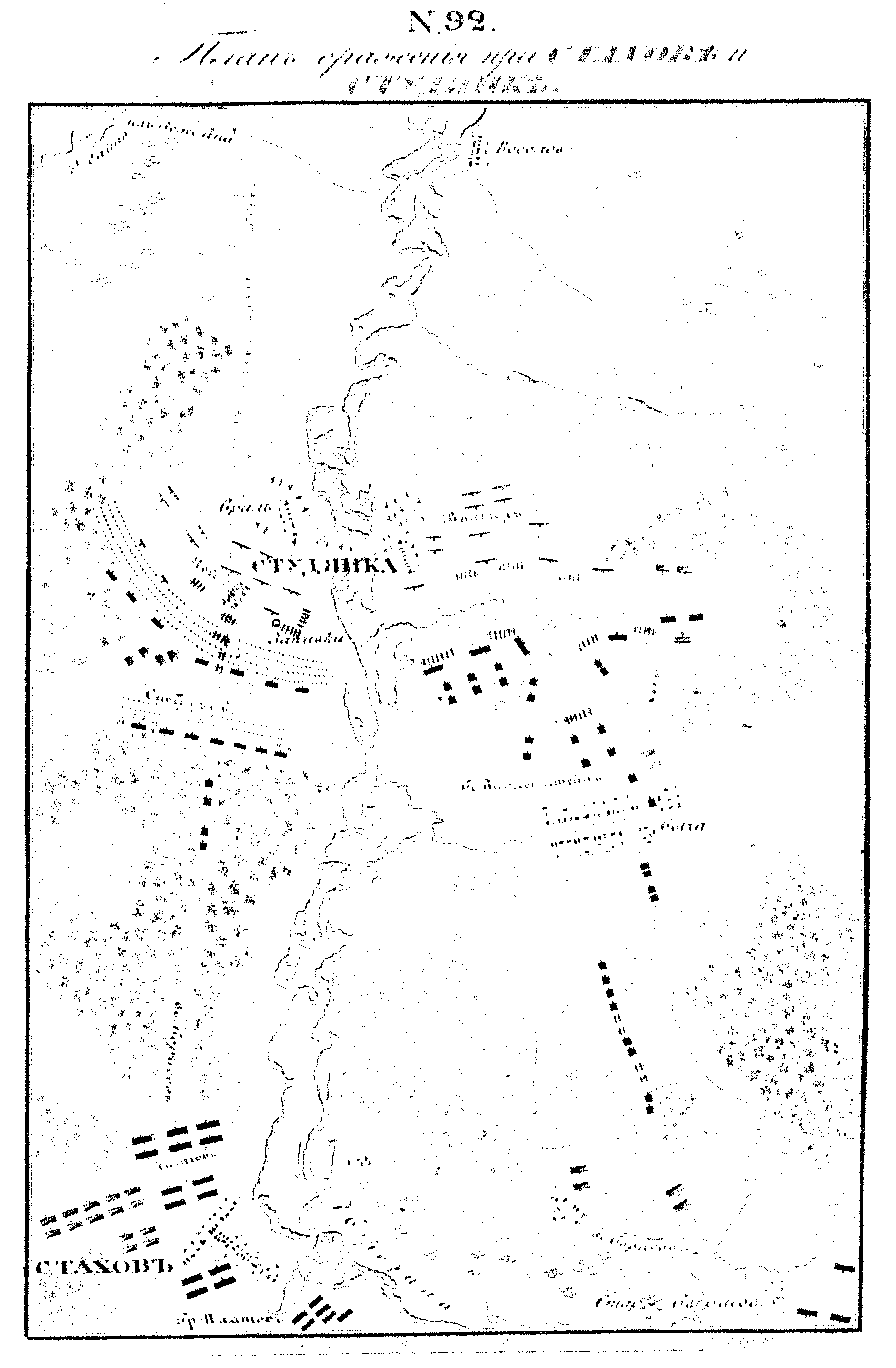 Карта-схема битвы при Фрауштадте, 13 (3) февраля 1706 года