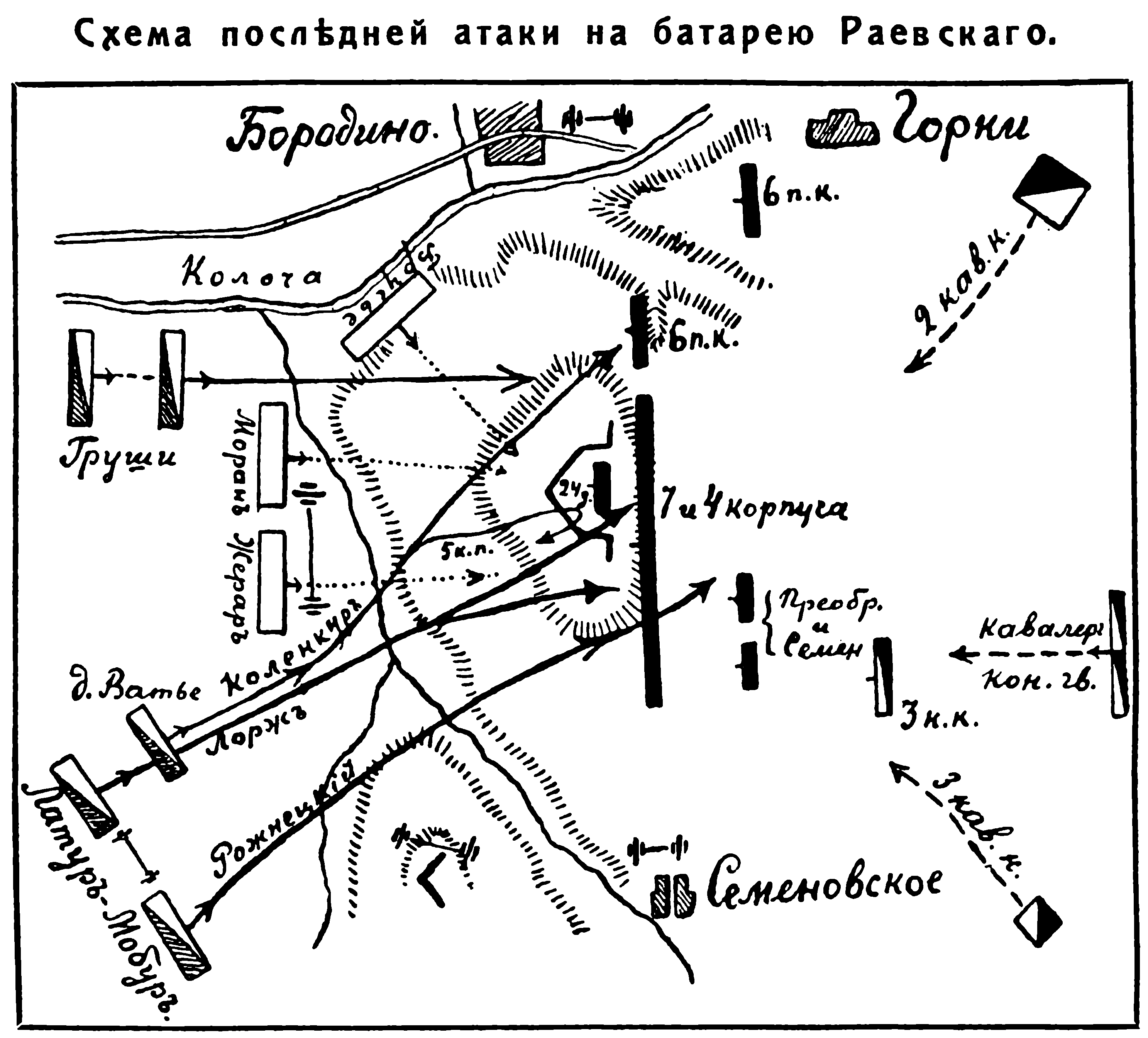 Схема последней атаки на батарею Раевского