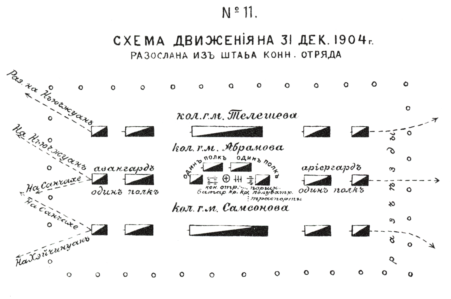 Схема движения на 31 декабря 1904 года, разосланная из штаба конного отряда