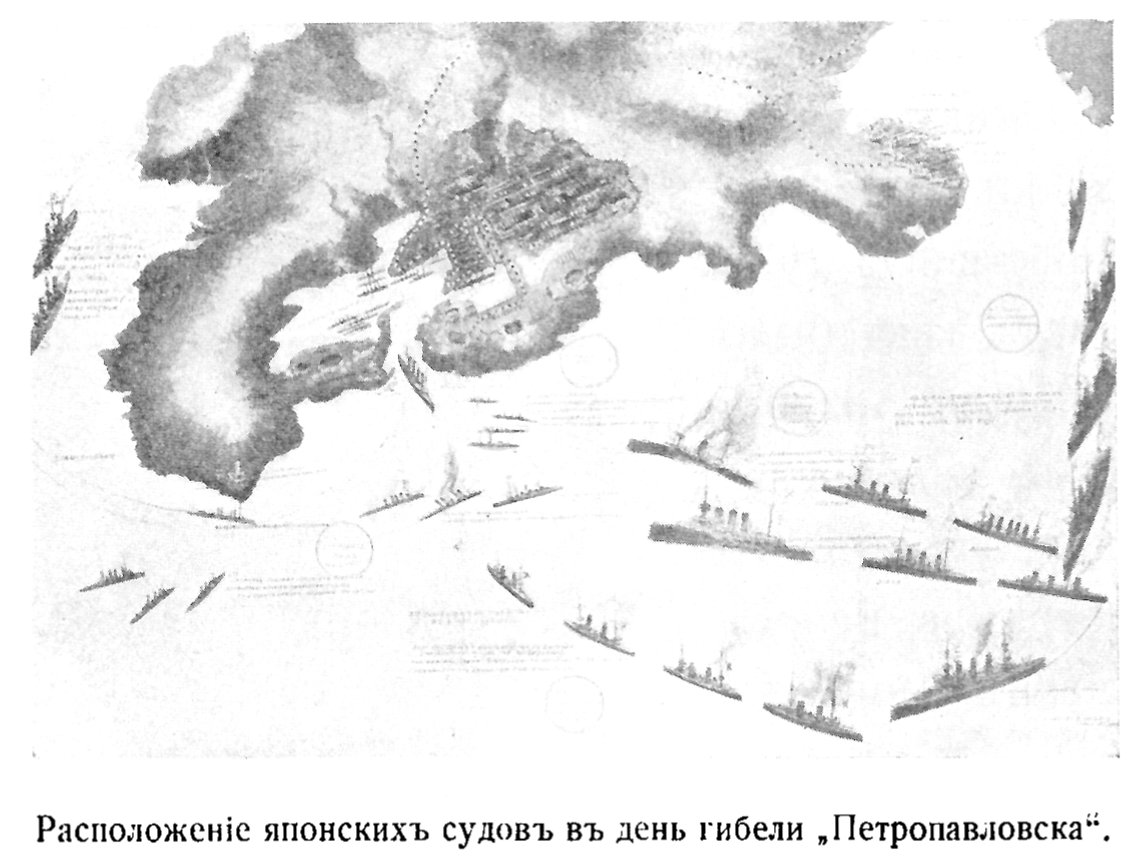 Расположение японских судов в день гибели "Петропавловска"