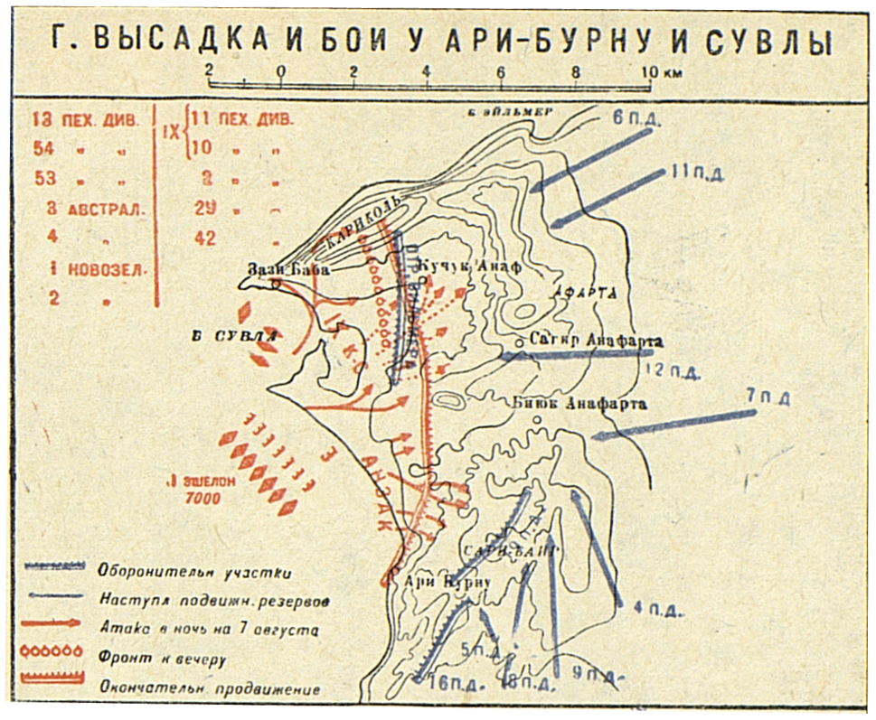 Кампания 1915 года. Азиатско-Турецкий театр. Дарданельская операция (период март-август). Высадка и бой у Ари-Бурку и Сувлы
