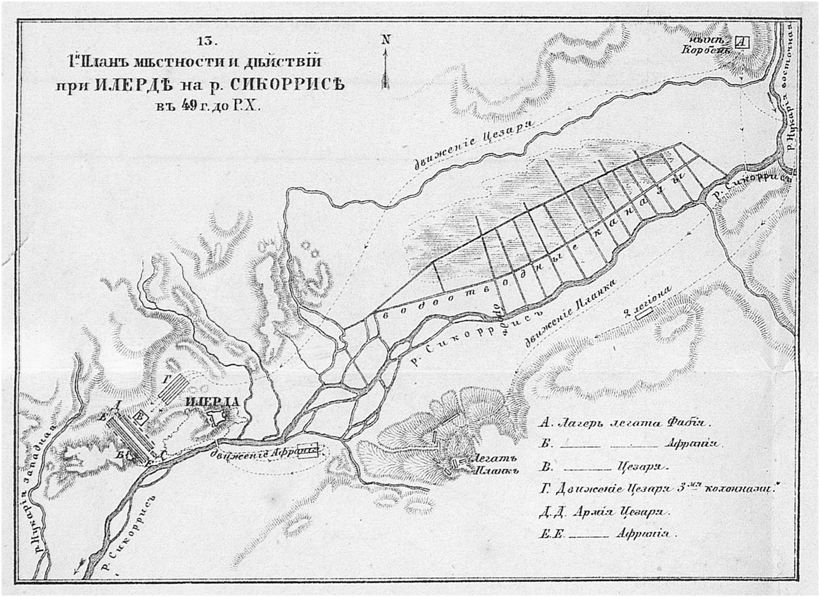 Первый план местности и действий при Илерди на реке Сикоррисе в Испании в 49 году до Р.Х.