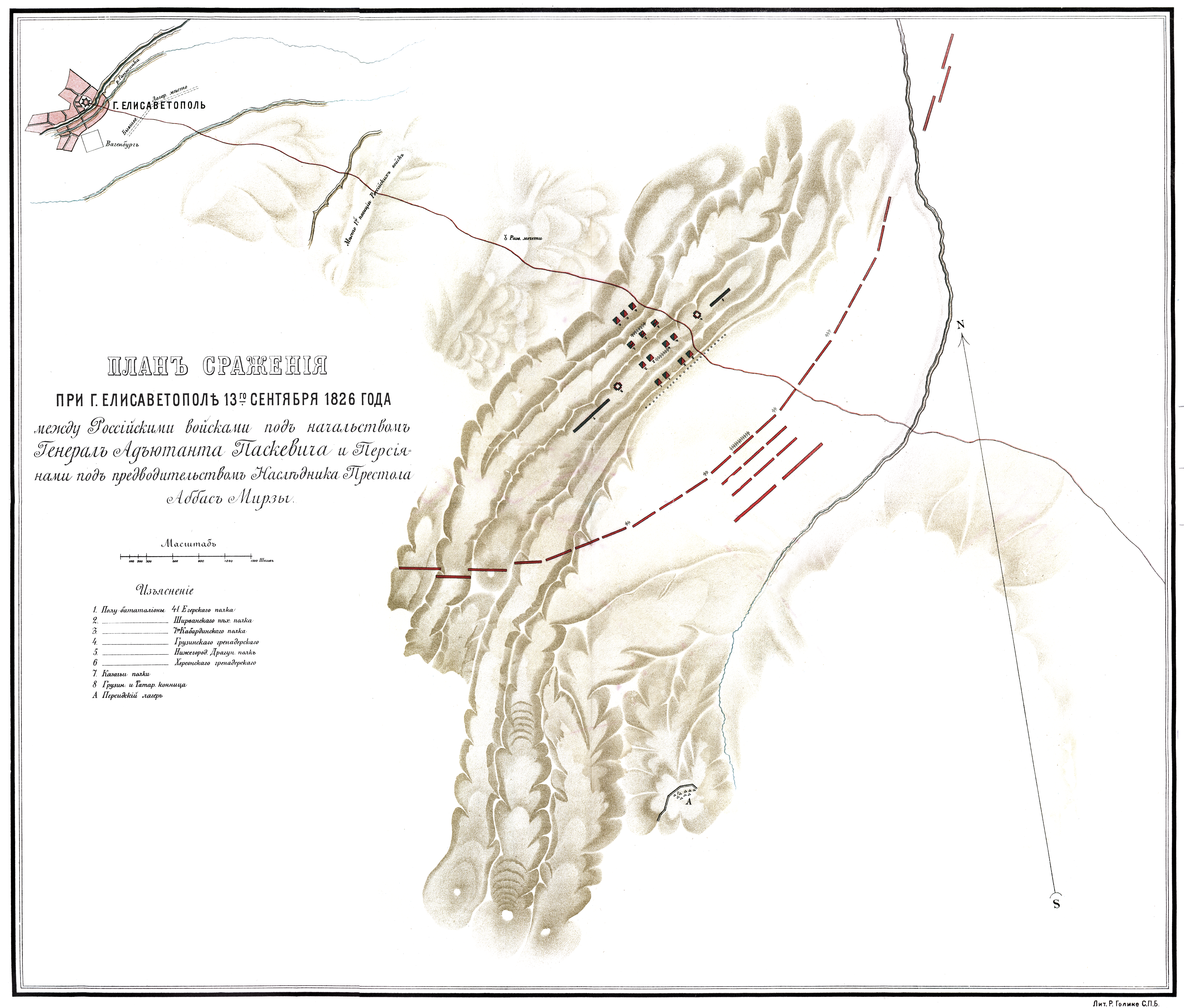 Сражение при городе Елисаветполе 13 сентября 1826 года между Российскими войсками под начальством Генерал-Адъютанта Генерала от Инфантерии Паскевича и Персиянами под предводительством Наследника Престола Аббас Мирзы