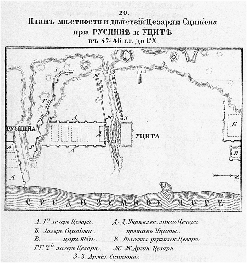 Местность и действия Цезаря и Сципиона при Руспине и Уците в 47-46 годах до Р.Х.
