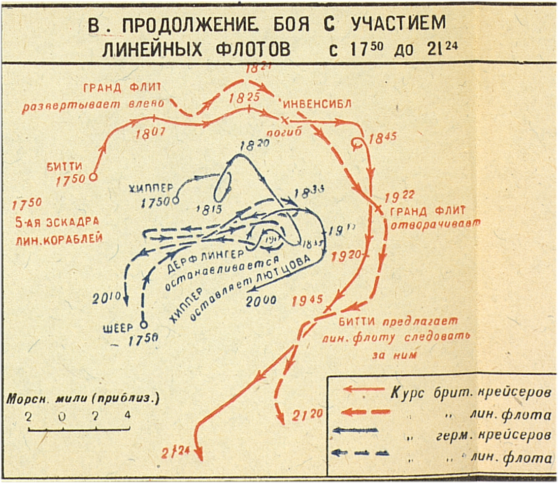 Кампания 1916 года. Война на море. Продолжение боя с участием линейных флотов с 17.50 до 21.24