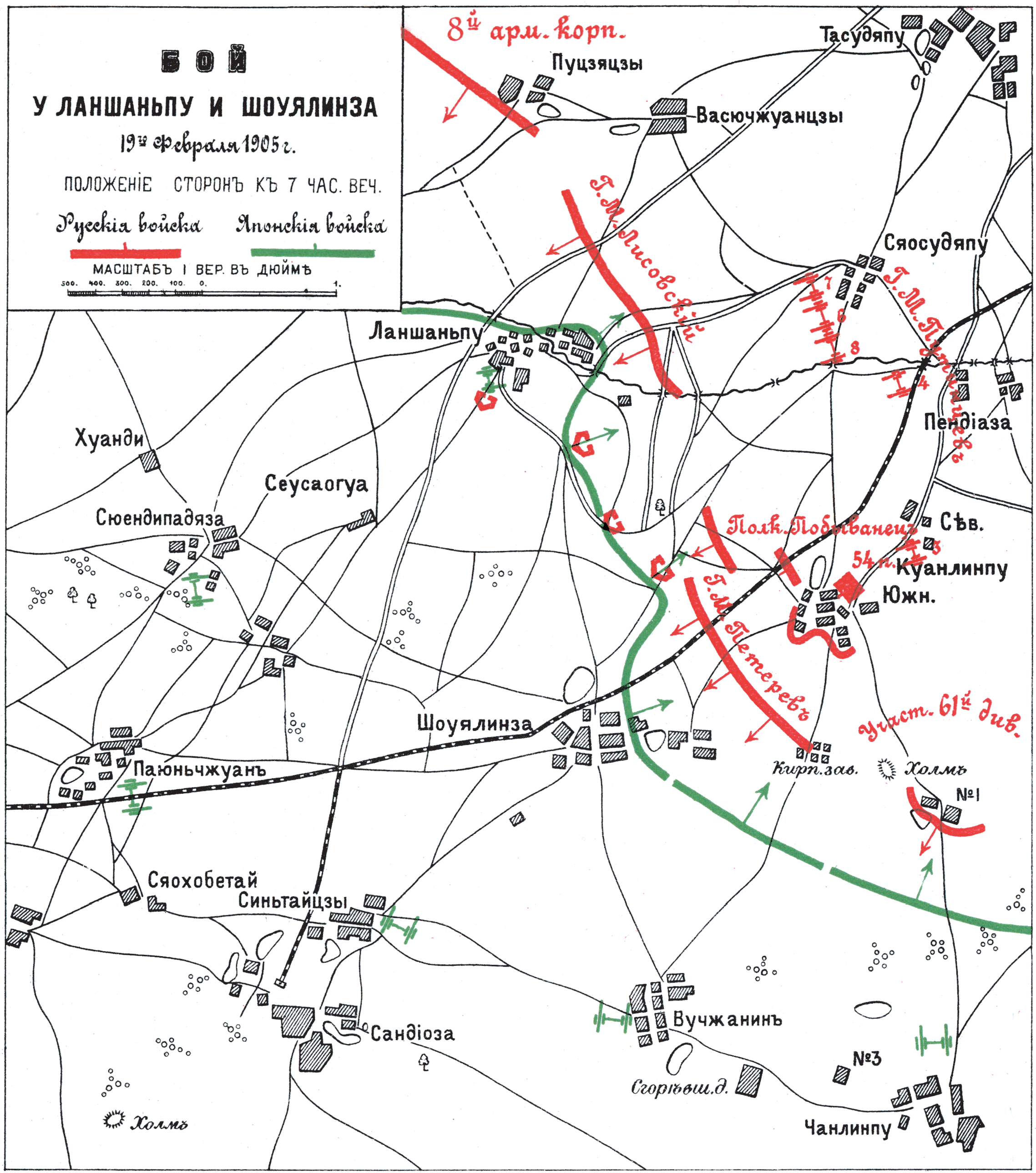 Бой у Ланшаньпу и Шоуялинза 19 февраля 1905 года. Положение сторон к 7 часам вечера
