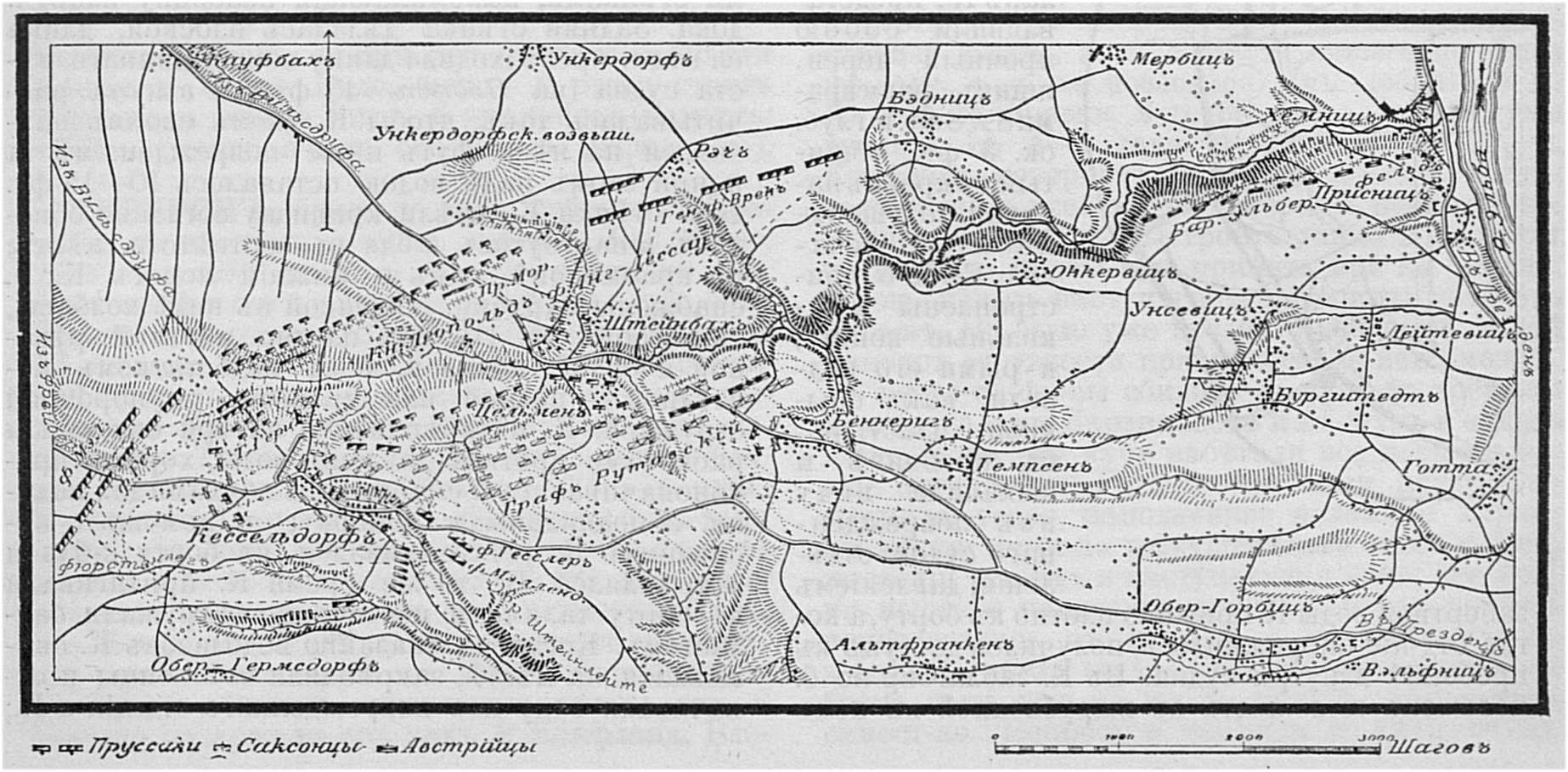 Карта-схема битвы при Фрауштадте, 13 (3) февраля 1706 года