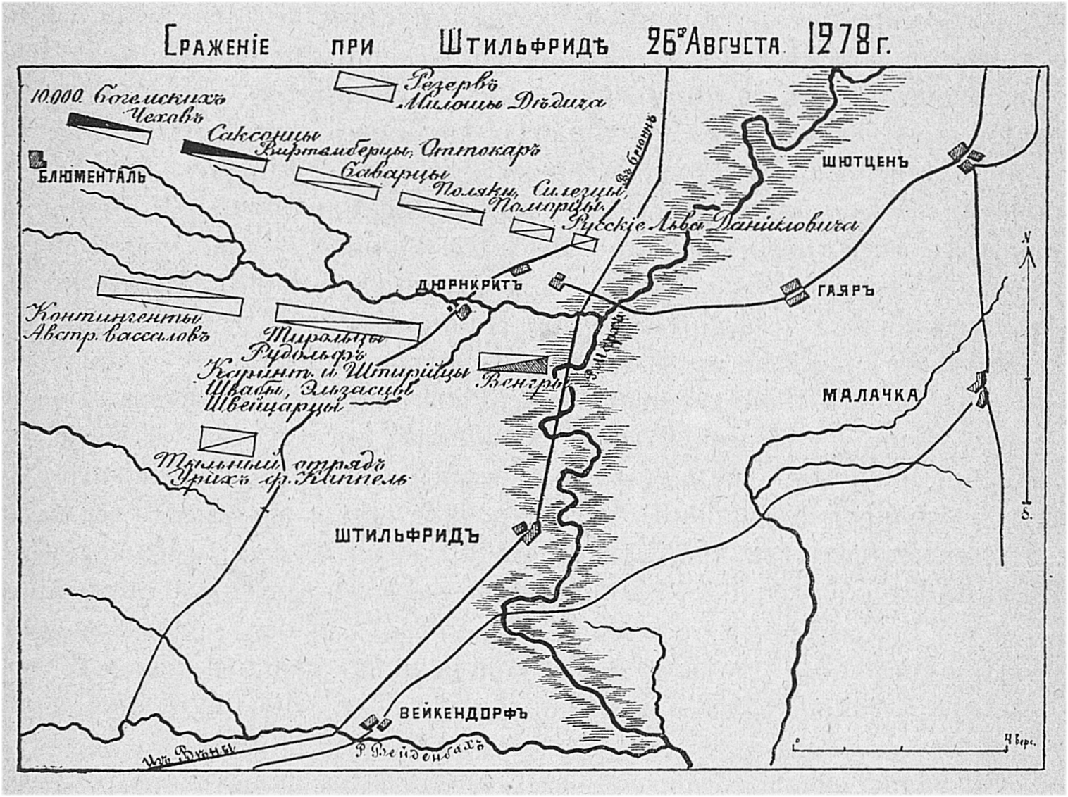 Карта-схема битвы при Фрауштадте, 13 (3) февраля 1706 года
