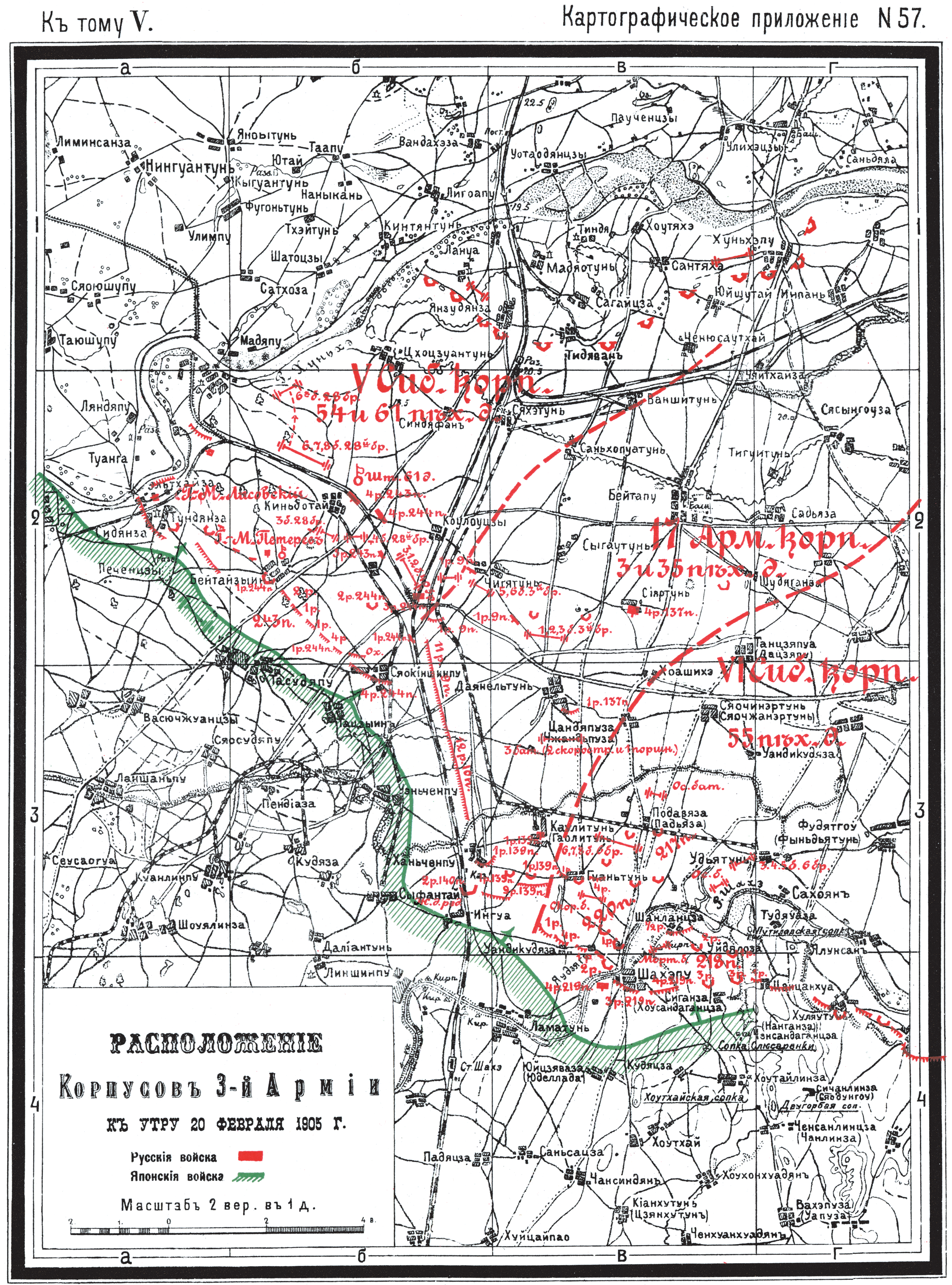 Расположение корпусов 3 Армии к утру 20 февраля 1905 года