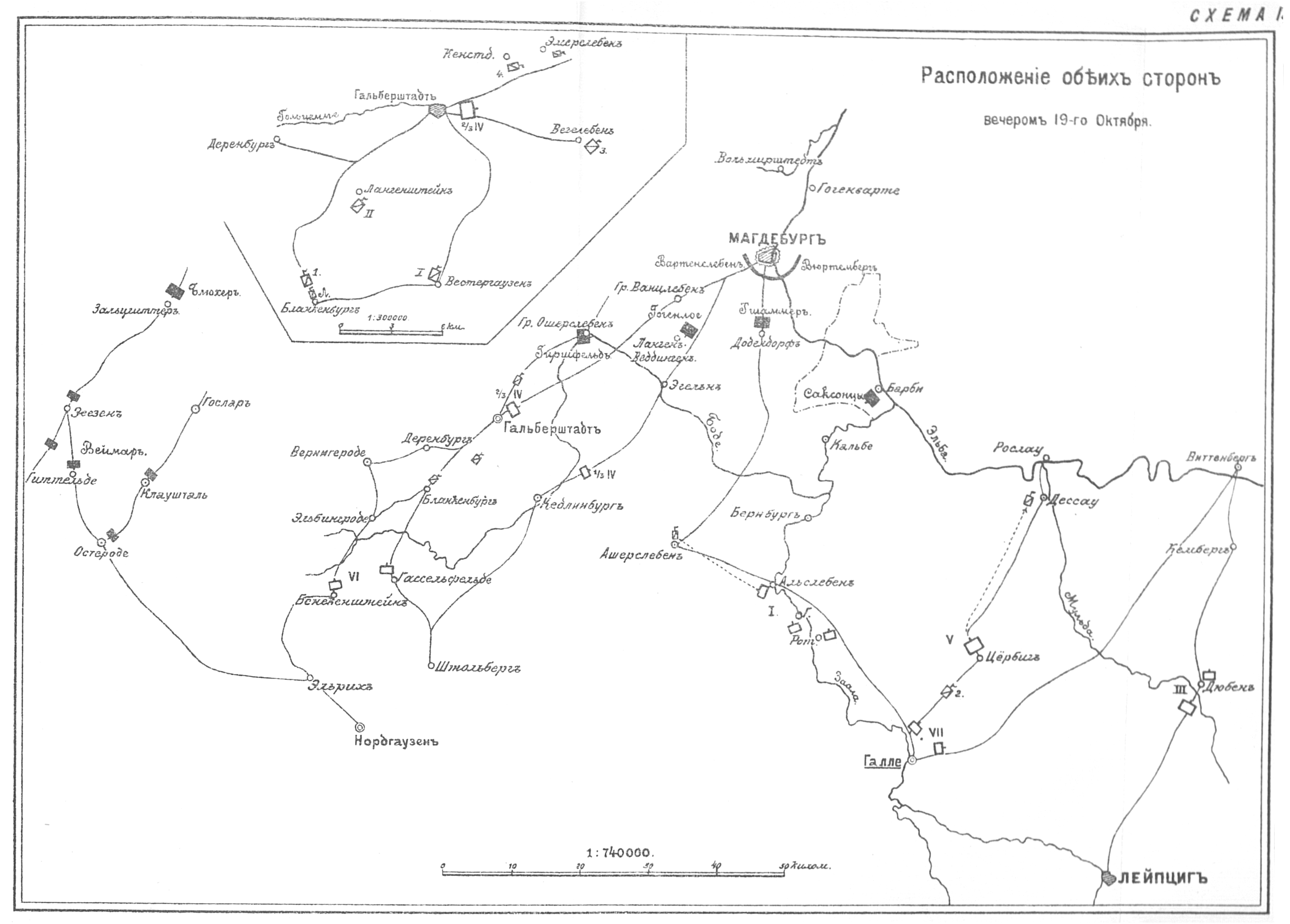 Карта-схема битвы при Фрауштадте, 13 (3) февраля 1706 года
