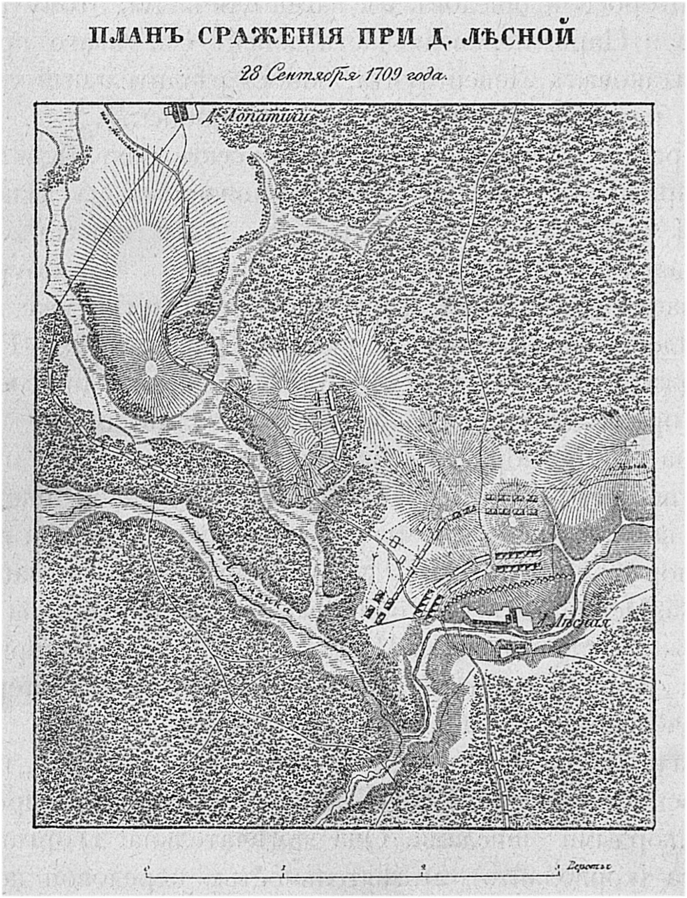 Карта-схема битвы при Фрауштадте, 13 (3) февраля 1706 года