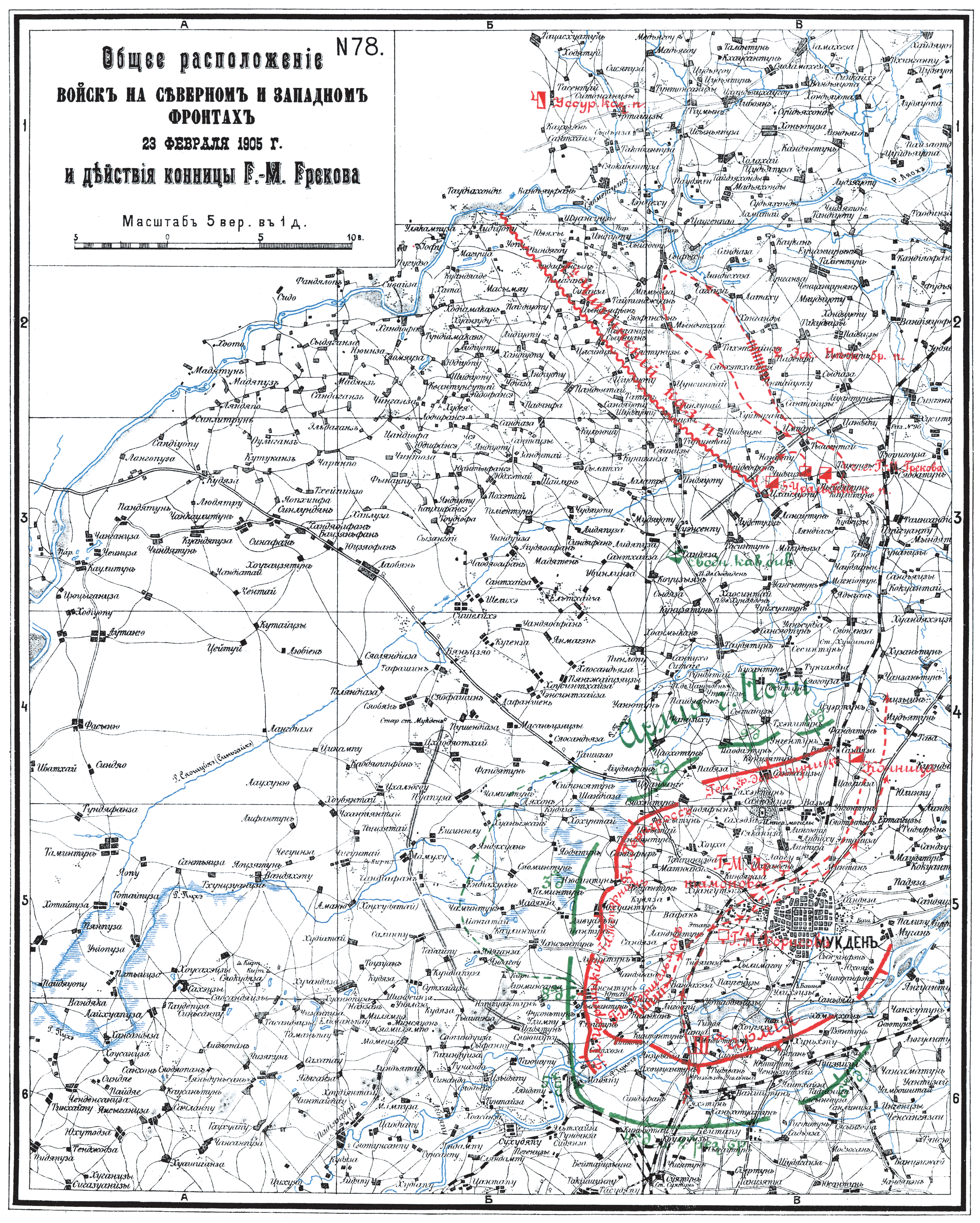 Общее расположение войск на северном и западном фронтах 23 февраля 1905 года и действия конницы генерал-майора Грекова