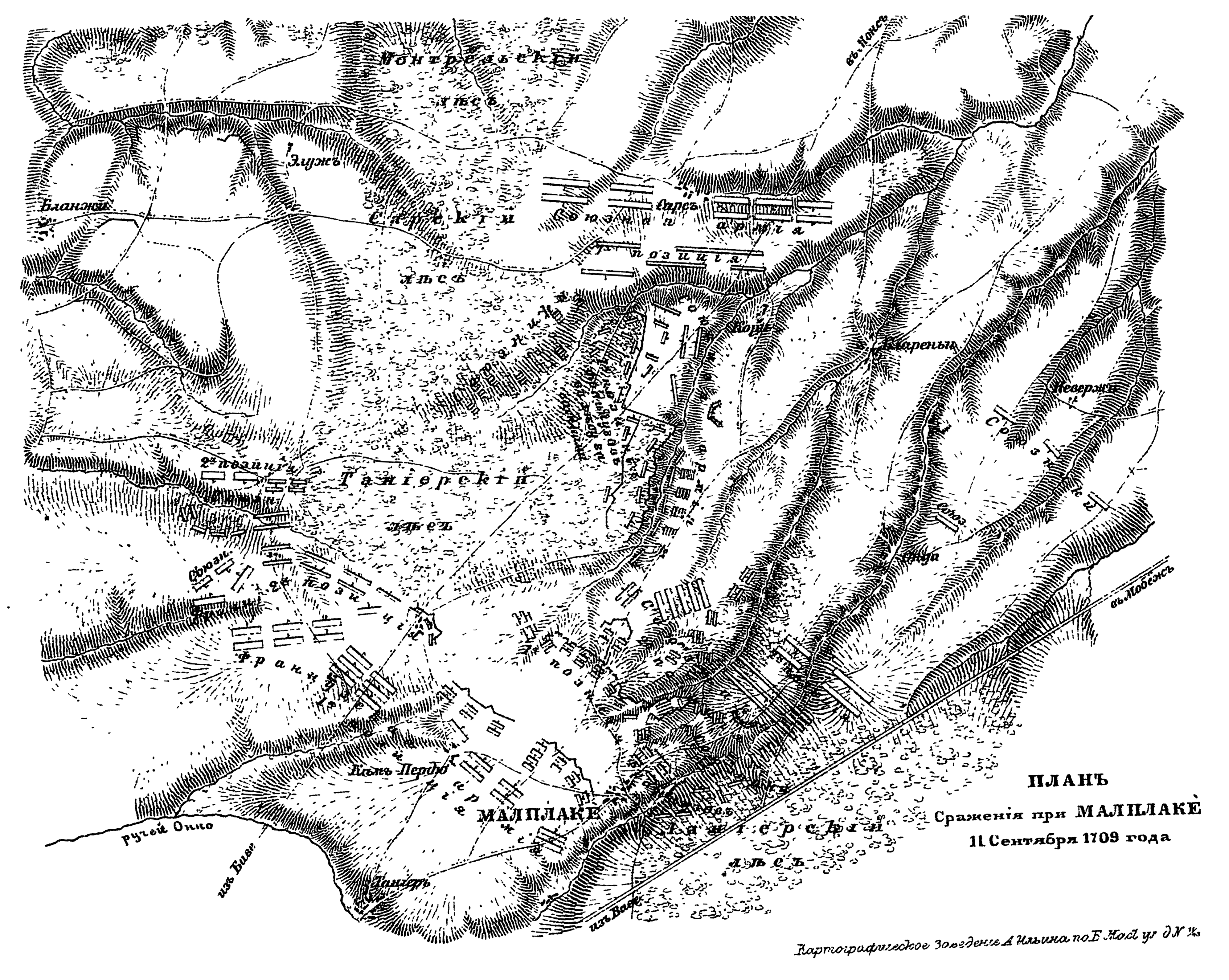 Карта-схема битвы при Фрауштадте, 13 (3) февраля 1706 года