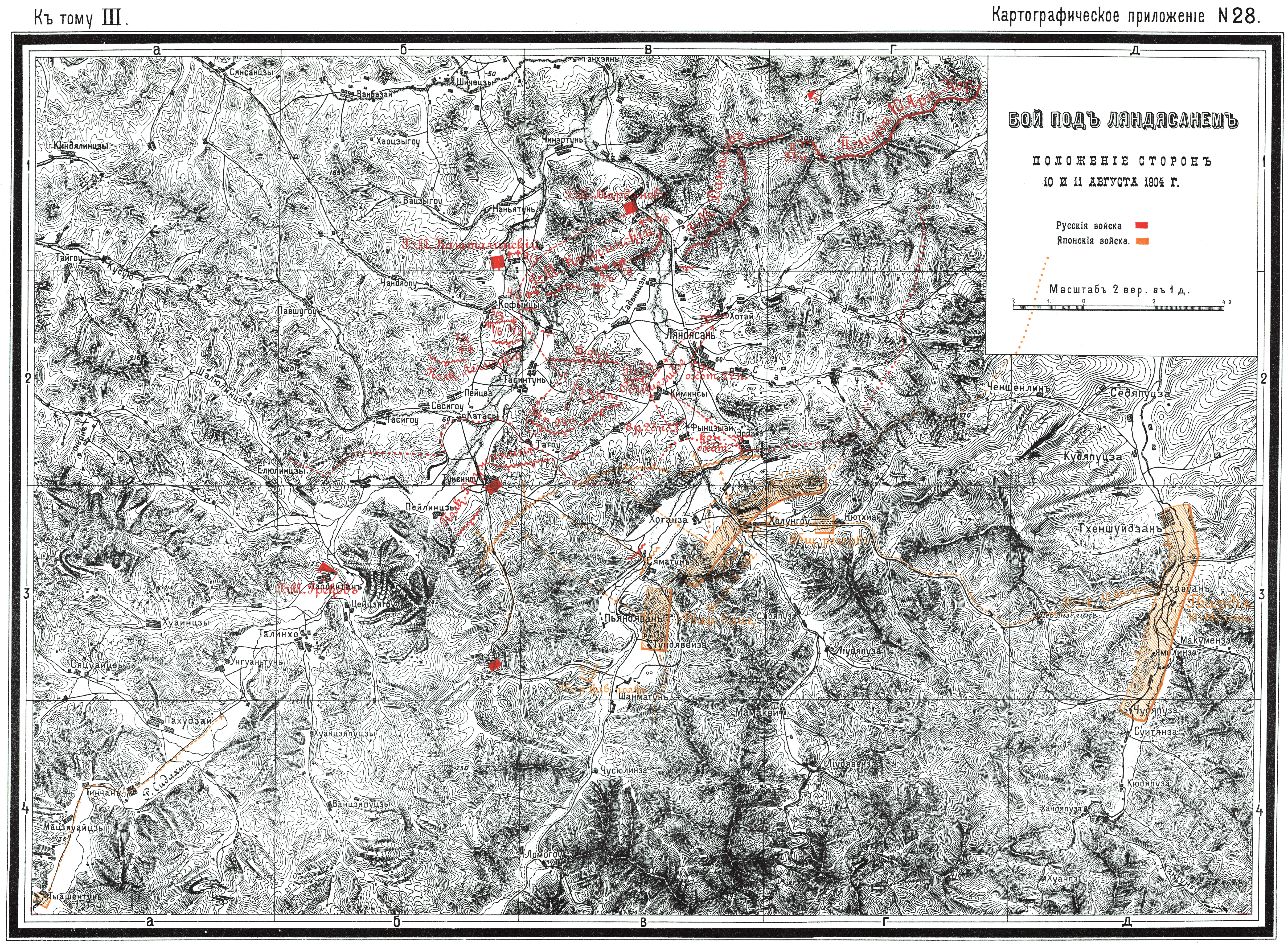 Бой под Ляндясанем. Положение сторон 10 и 11 августа 1904 года