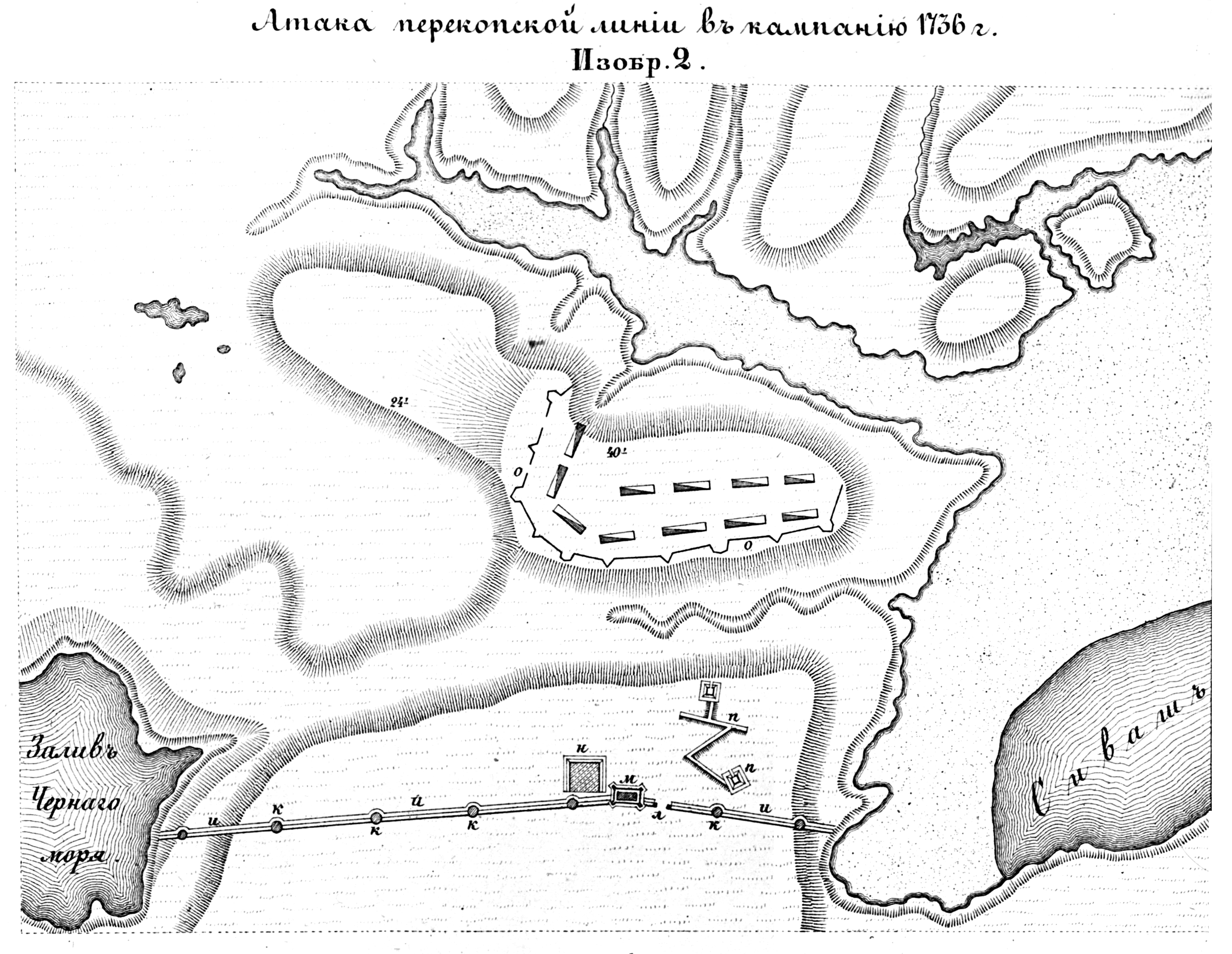 Полевые и временные укрепления. Изобр.2. Атака перекопской линии в кампанию 1736 года