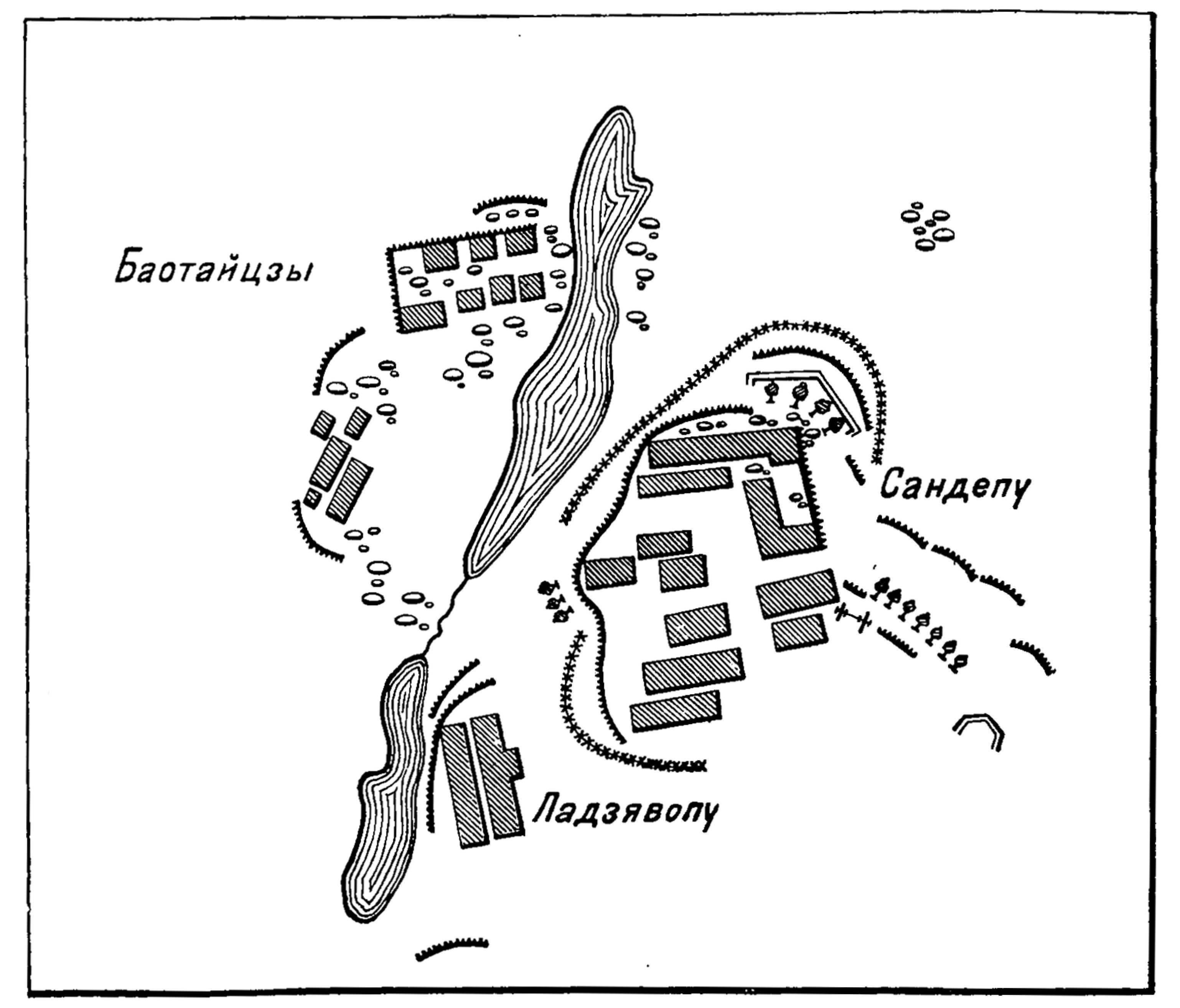 Кроки Сандепу при рекогносцировке с воздушного шара 7 января у деревни Чжоуганьпу
