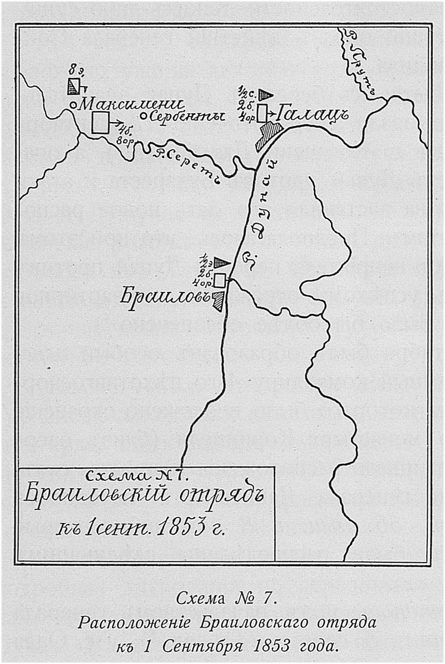Расположение Браиловского отряда к 1 сентября 1853 года