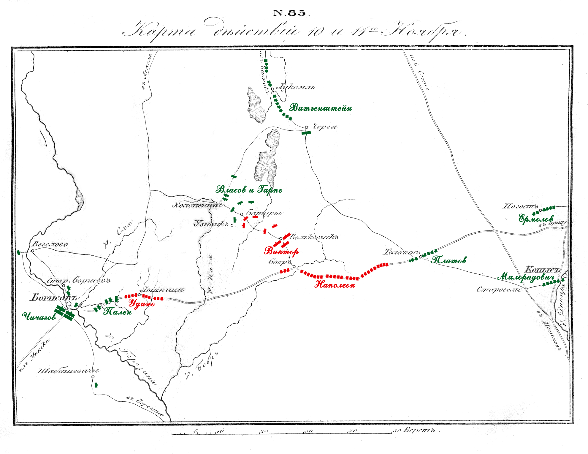 Карта действий 10-го и 11-го Ноября 1812 года.