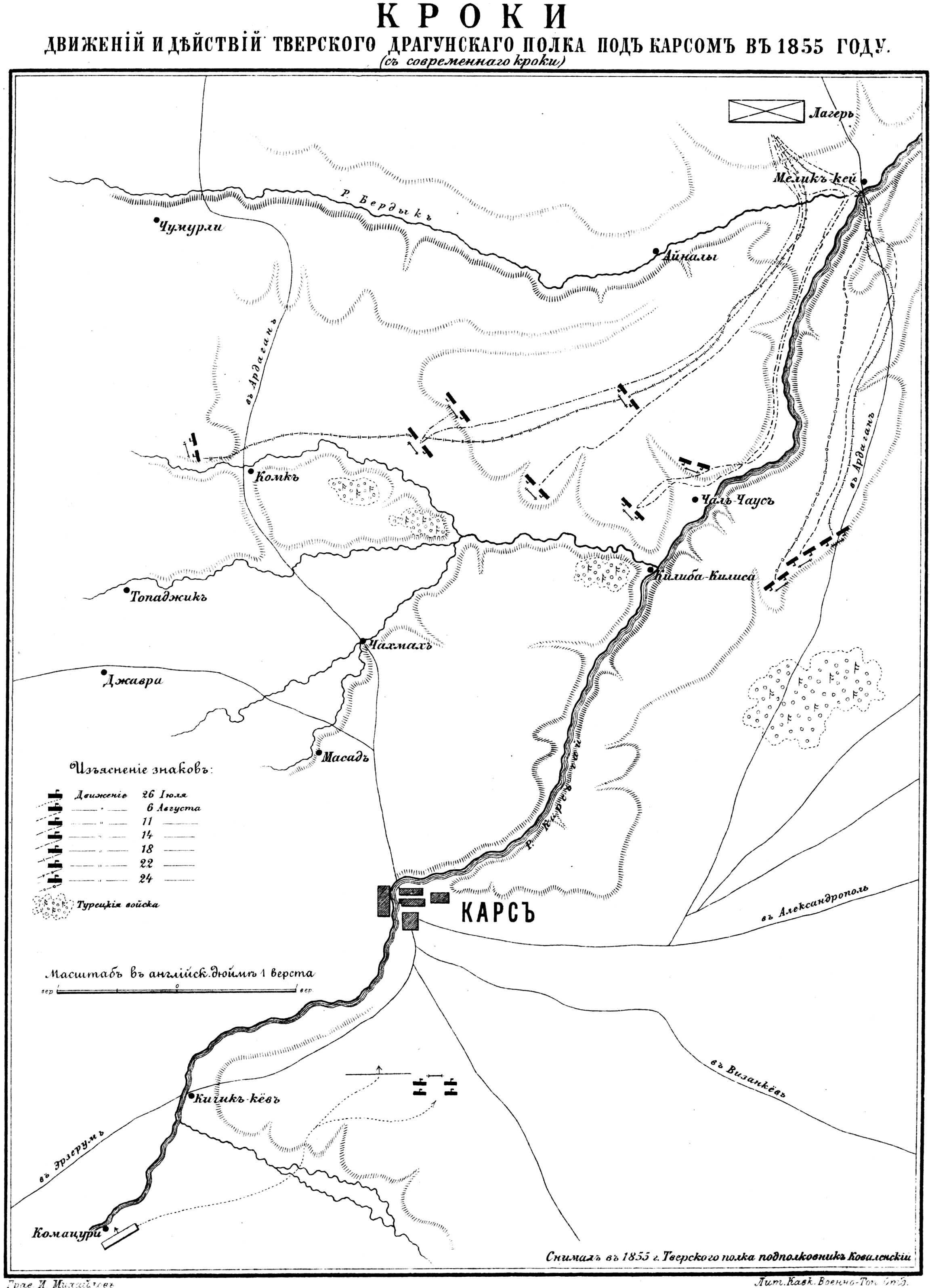 Кроки движений и действий Тверского драгунского полка под Карсом в 1855 году (с современного кроки)