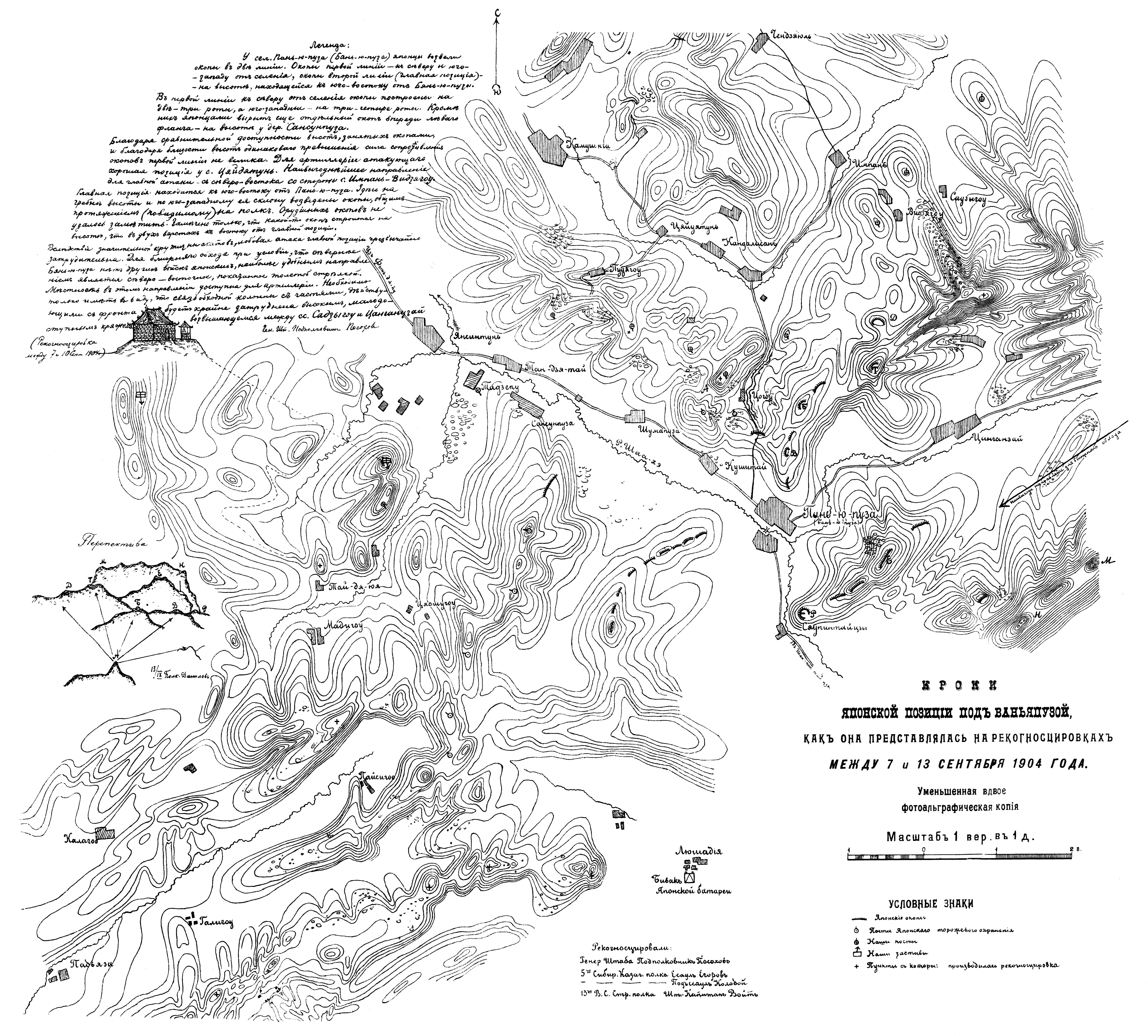 Кроки японской позиции под Ваньяпузой, как она представлялась на рекогносцировках между 7 и 13 сентября 1904 года
