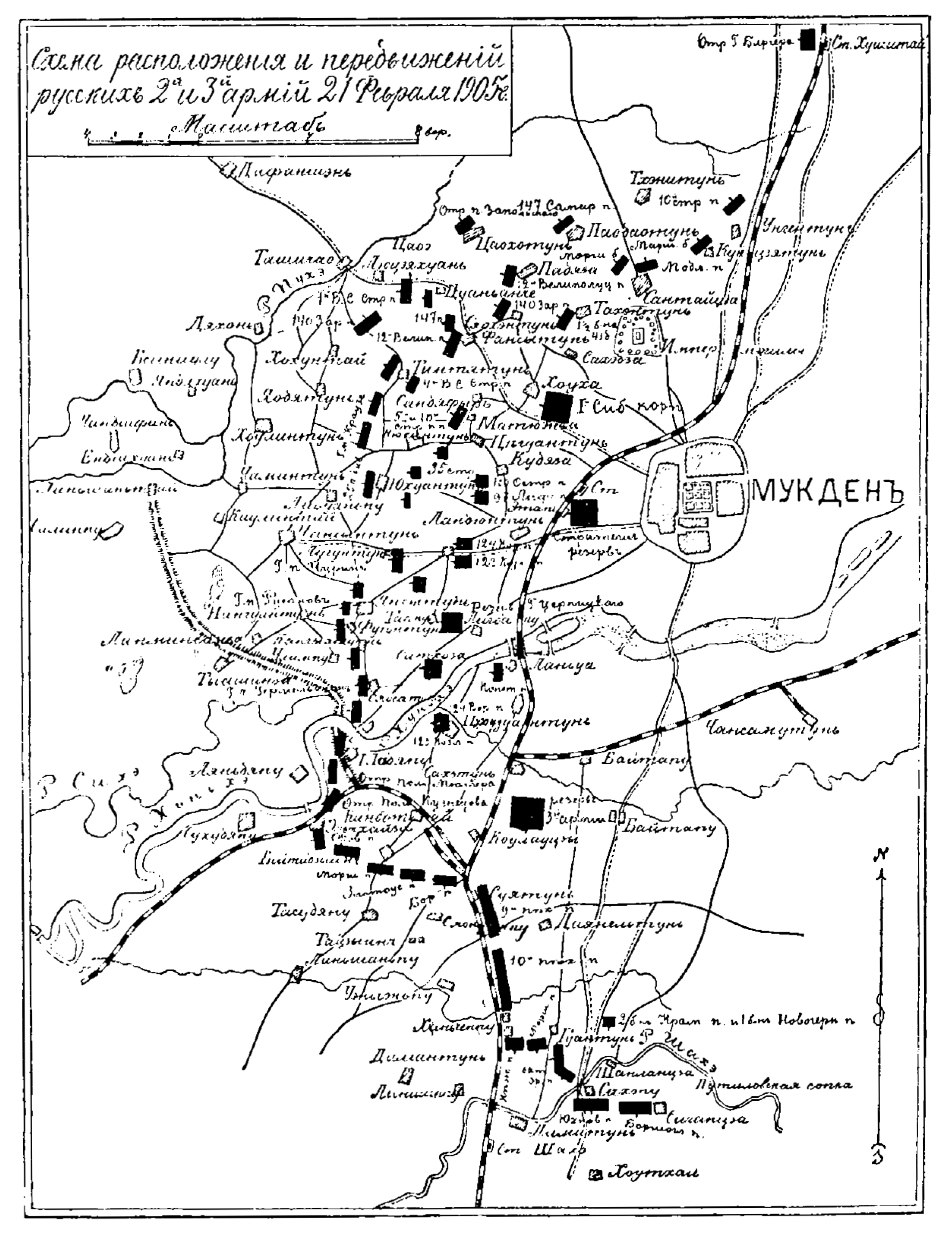 Схема расположения и передвижений русских 2 и 3 армий 21 февраля 1905 года