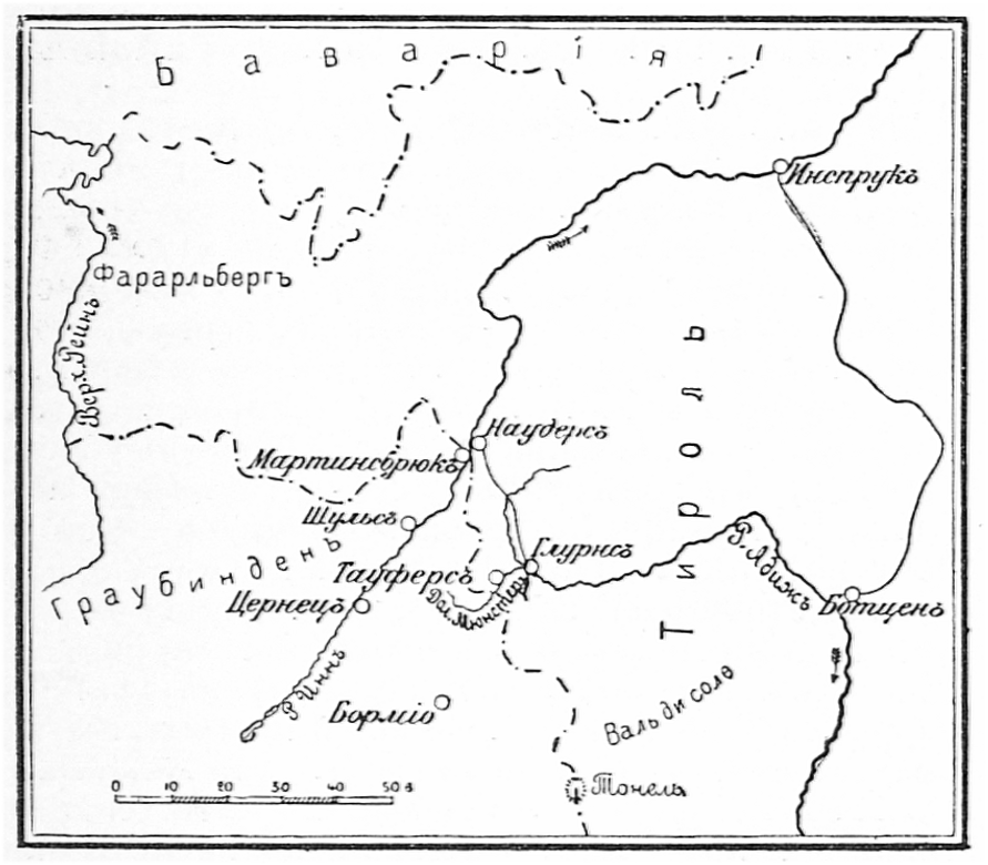 Район боевых действий у города Мартинсбрюк в войну 1799 года французов с австрийцами