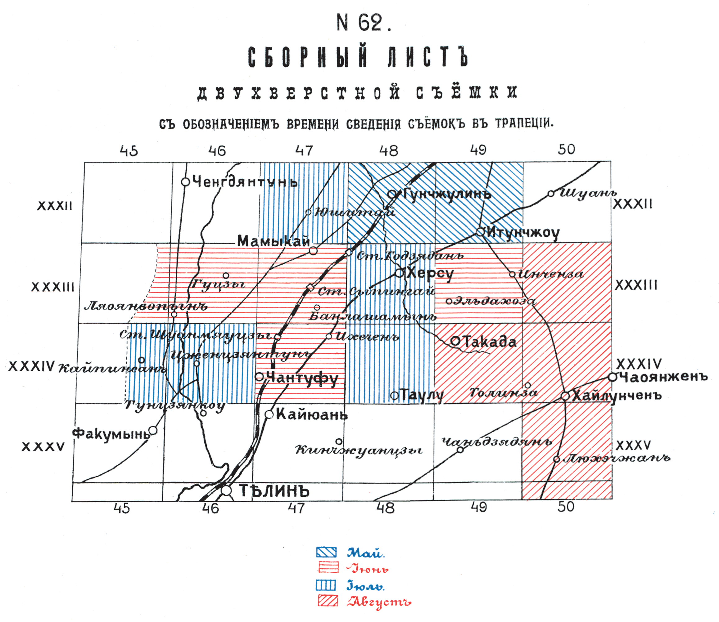 Сборный лист двухверстной съемки с обозначением времени сведения съемок в трапеции