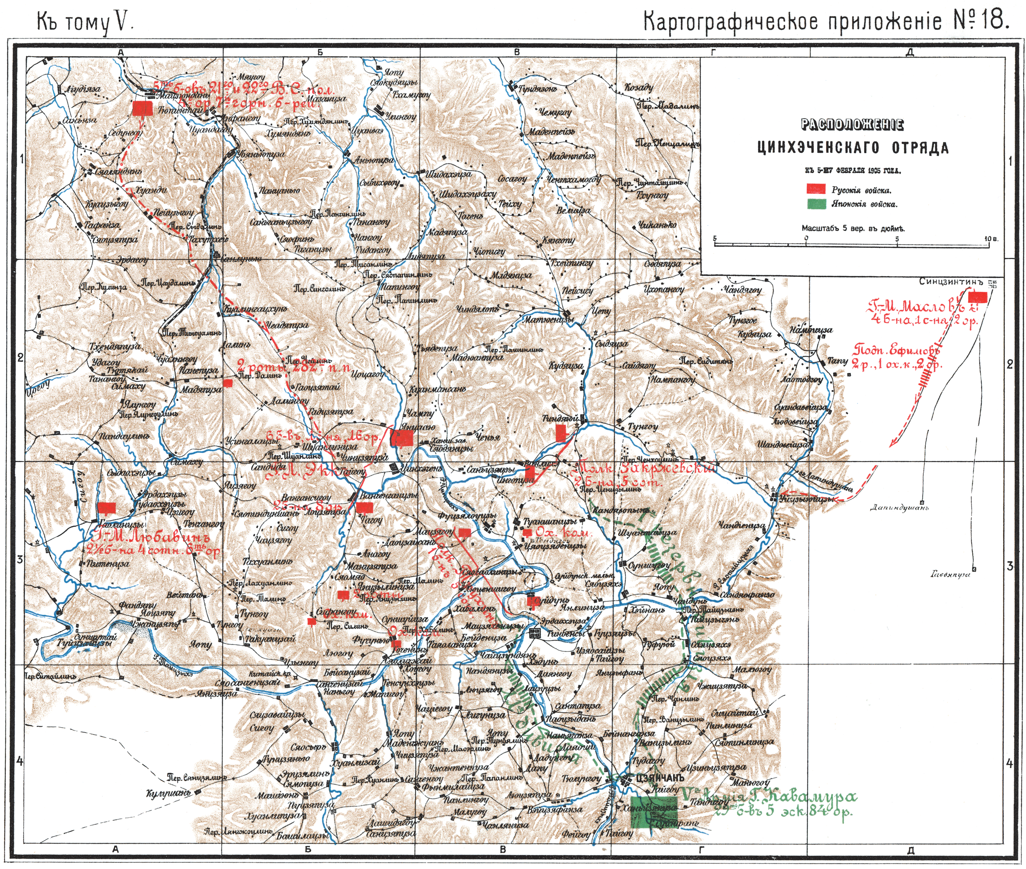 Расположение Цинхэченского отряда к 5 февраля 1905 года