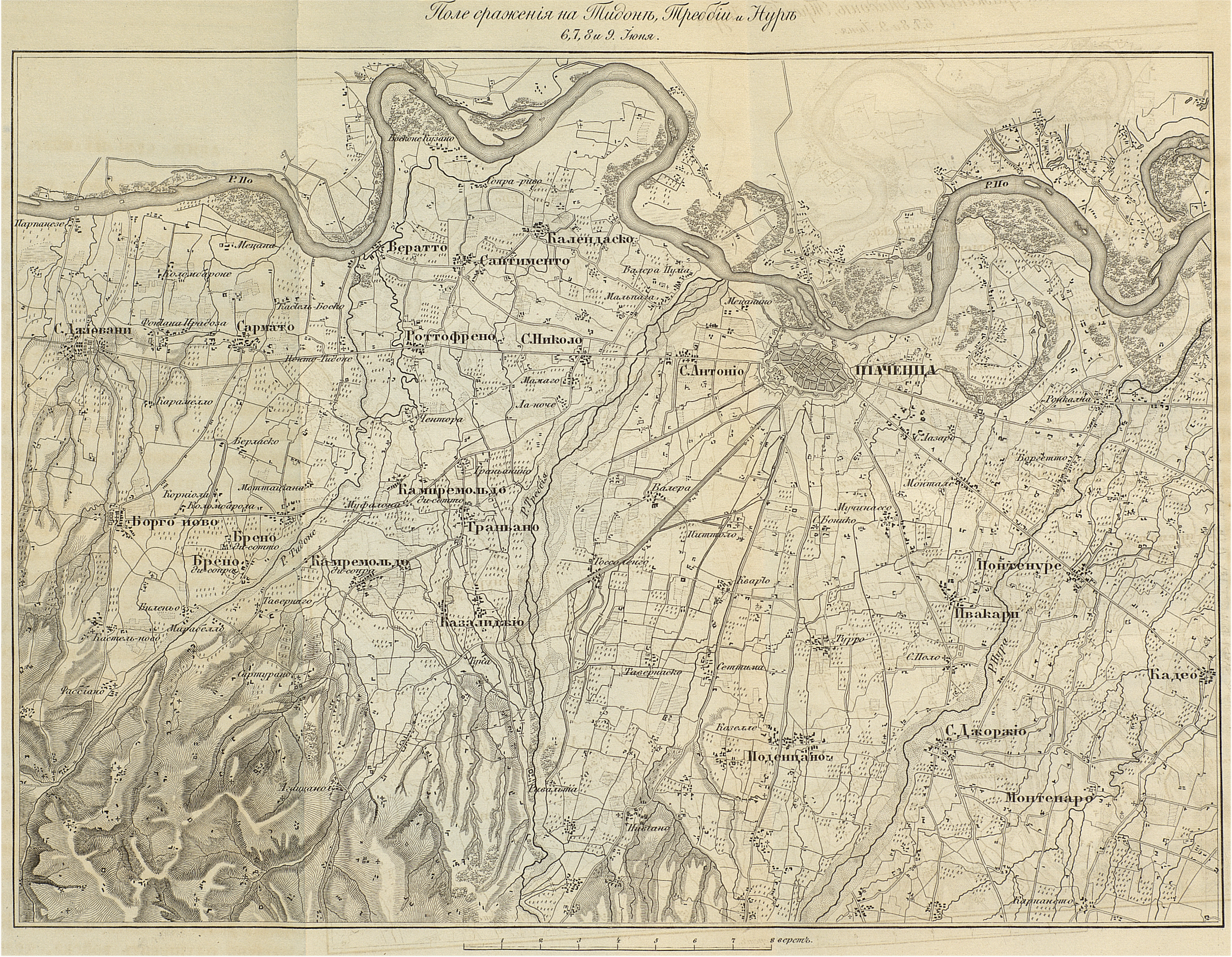 Поле сражения на Тидоне, Треббии и Нуре 6, 7 и 8 июня 1799г.