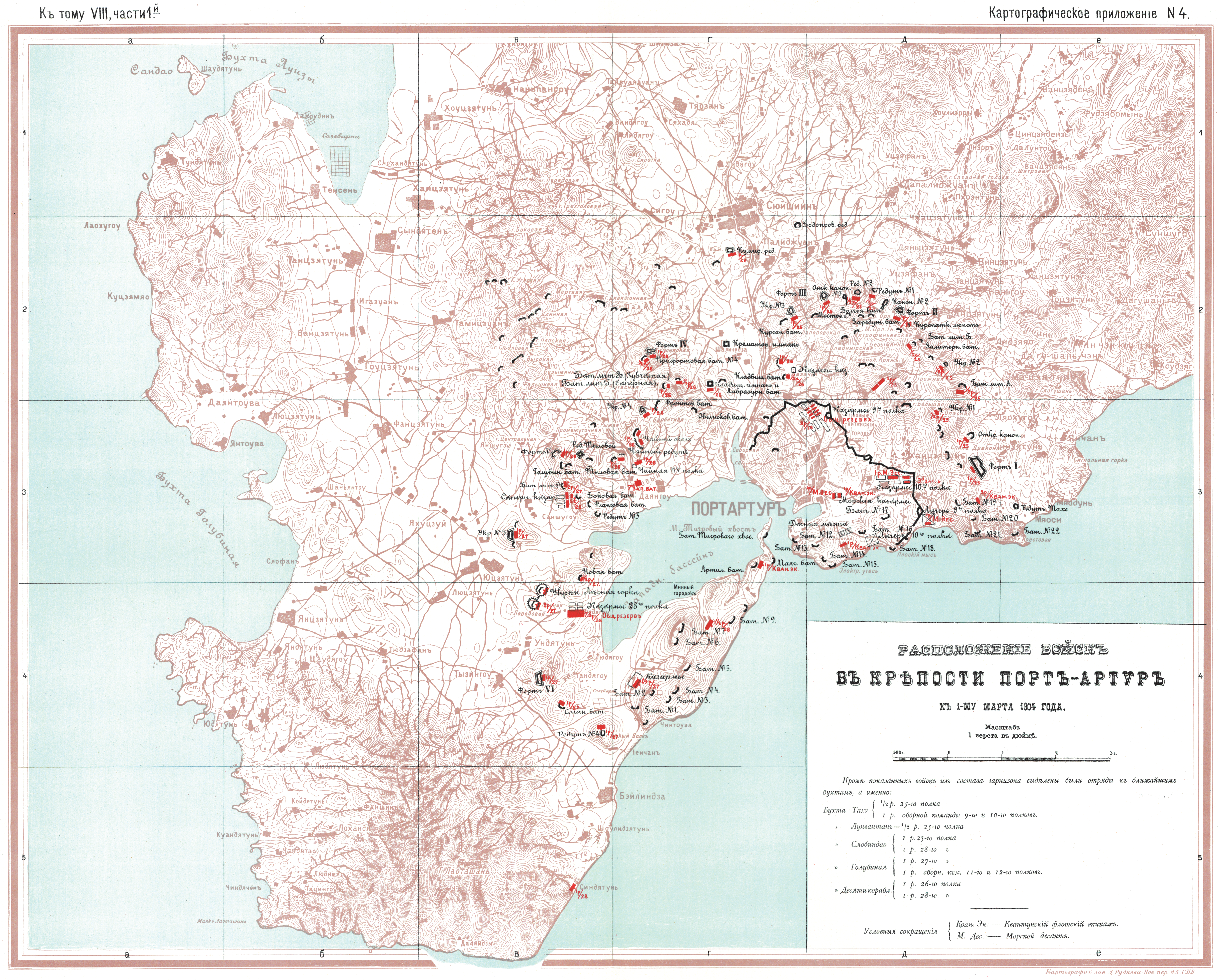 Расположение войск в крепости Порт-Артур к 1 марта 1904 года