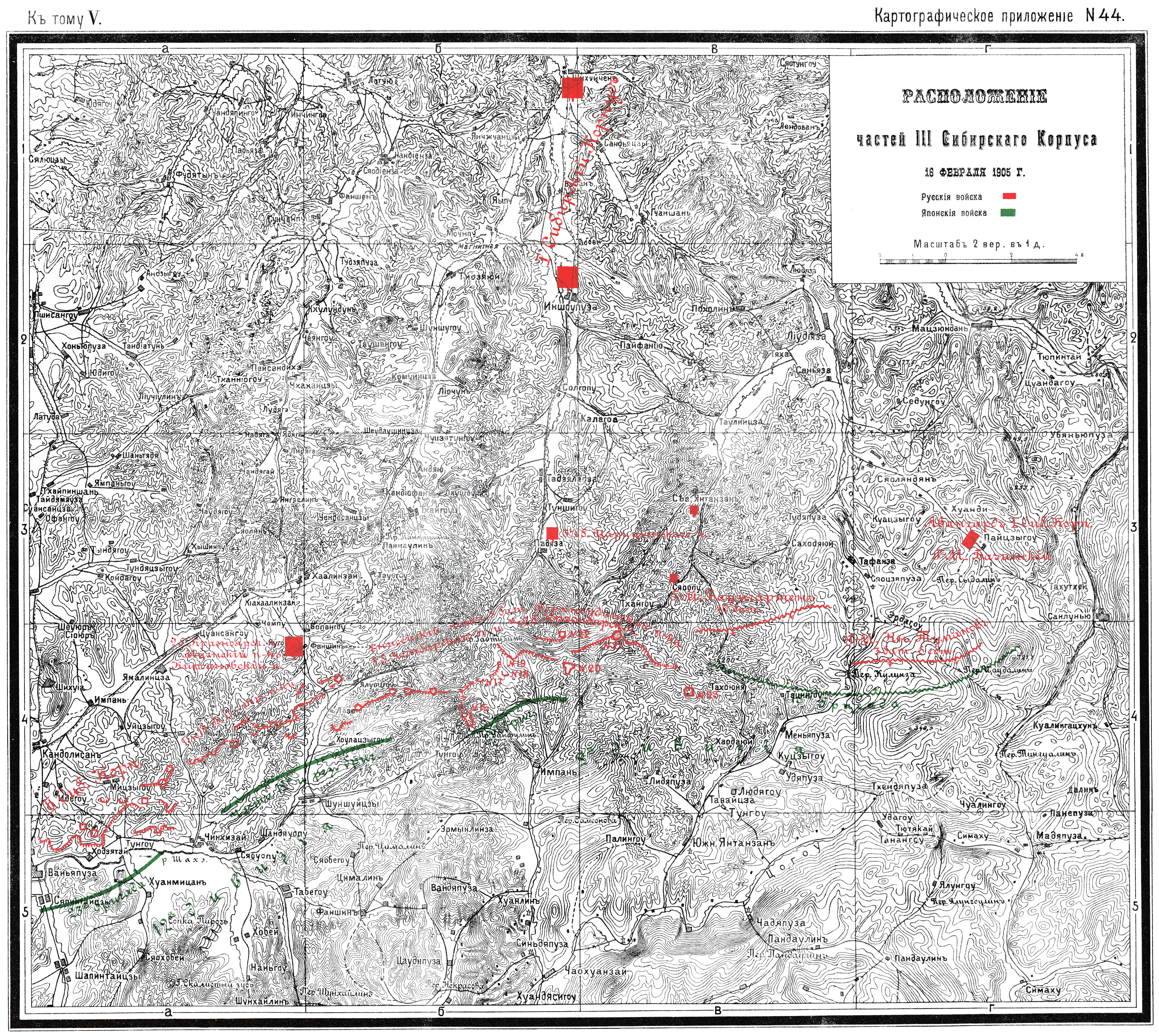 Расположение частей III Сибирского корпуса 16 февраля 1905 года