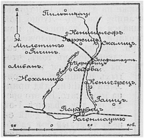 Район сражения 6 августа 1458 года у крепости Кениггрец
