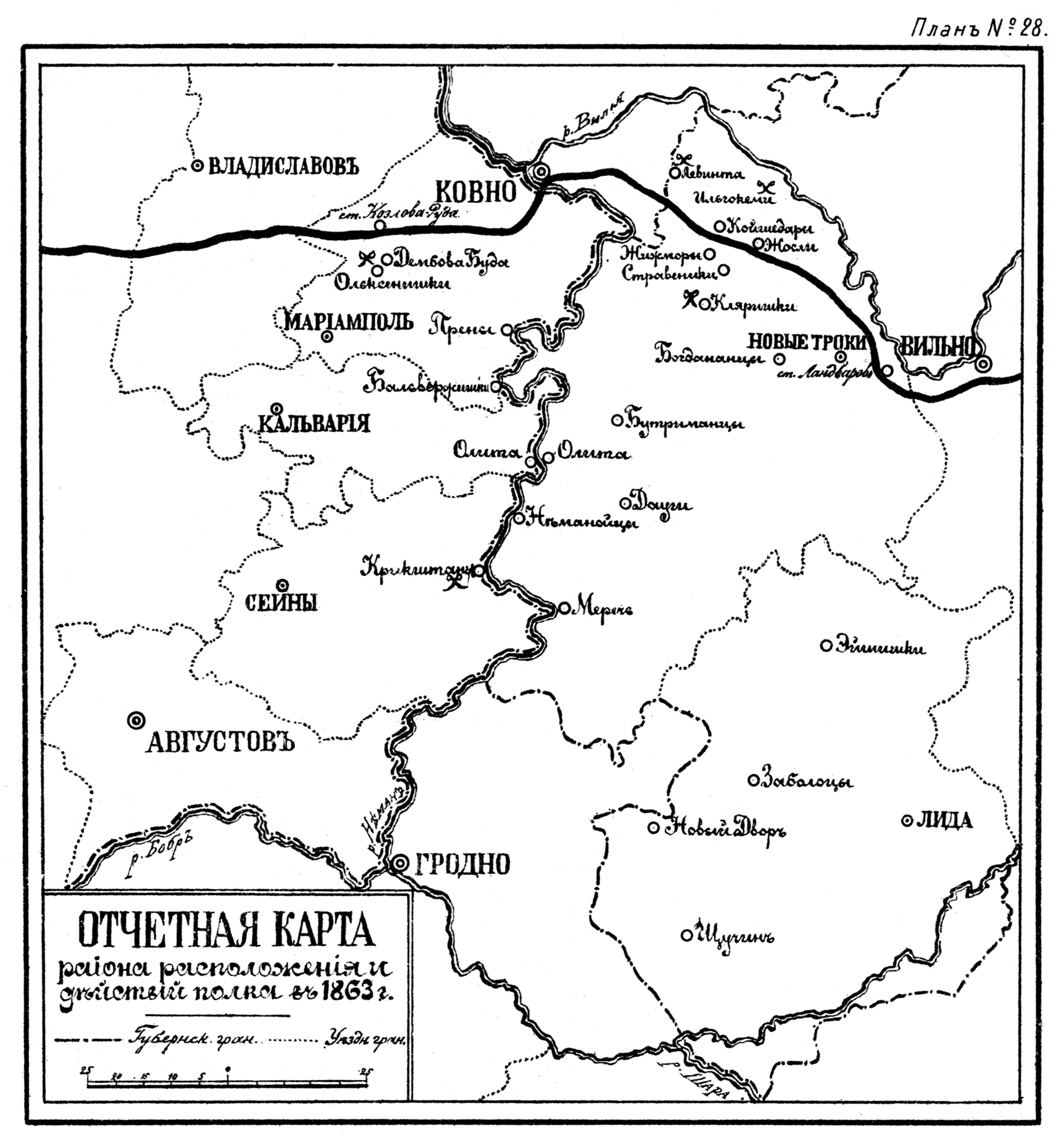 Отчетная карта района расположения и действий полка в 1863 году