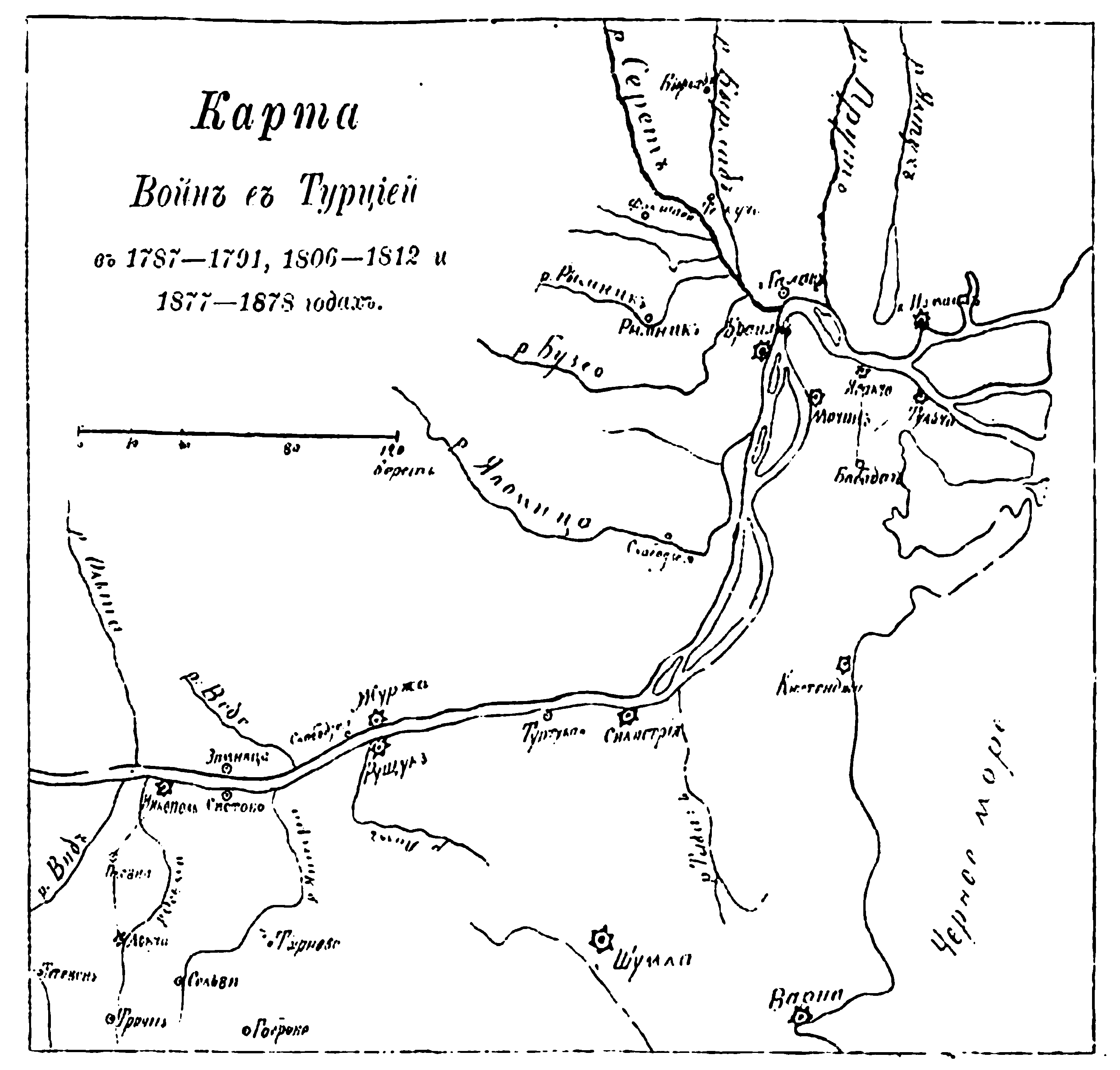 Карта войн с Турцией в 1787-1791, 1806-1812 и 1877-1878 годах