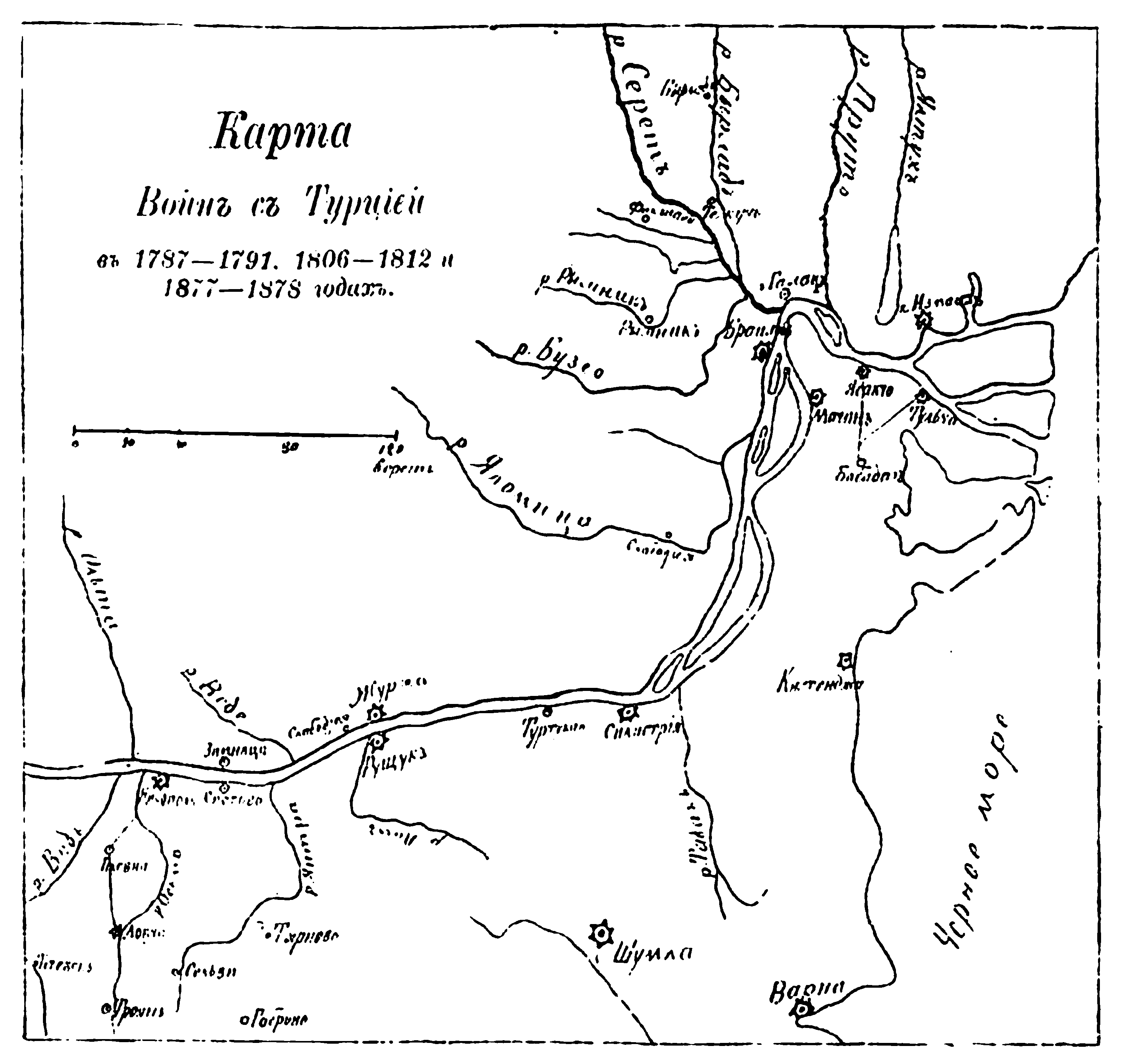 Карта войн с Турцией в 1787-1791, 1806-1812 и 1877-1878 годах