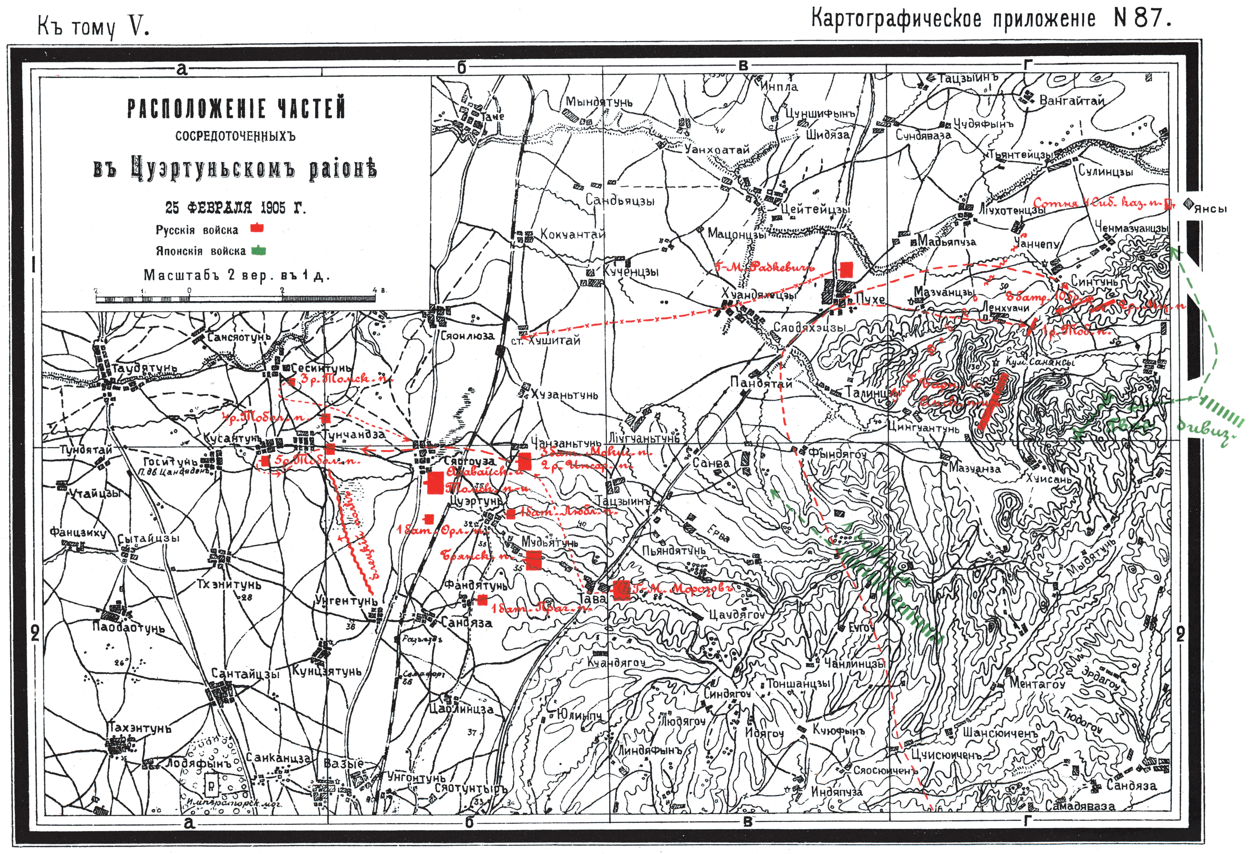 Расположение частей, сосредоточенных в Цуэртуньском районе 25 февраля 1905 года
