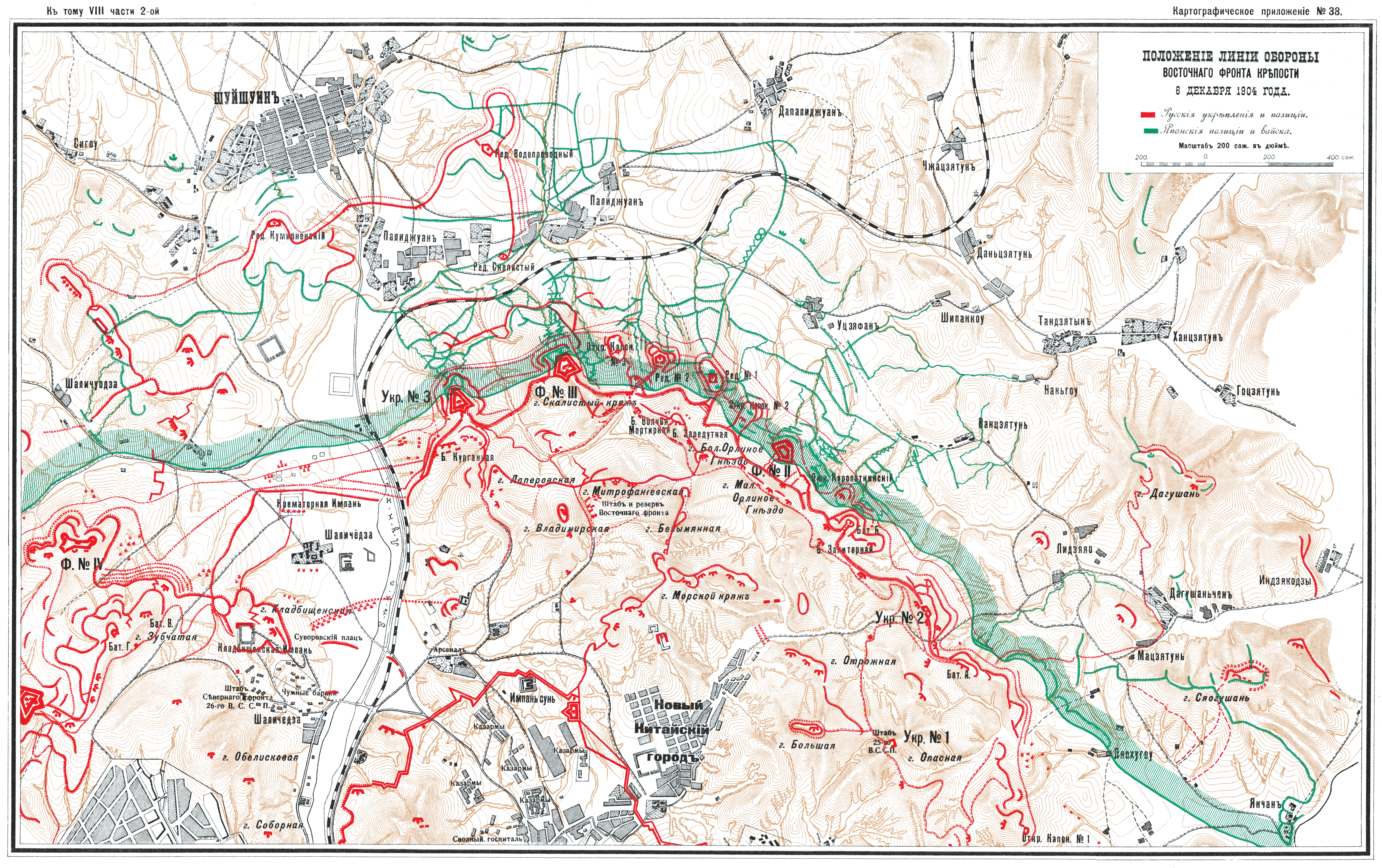 Положение линии обороны Восточного фронта крепости 6 декабря 1904 года